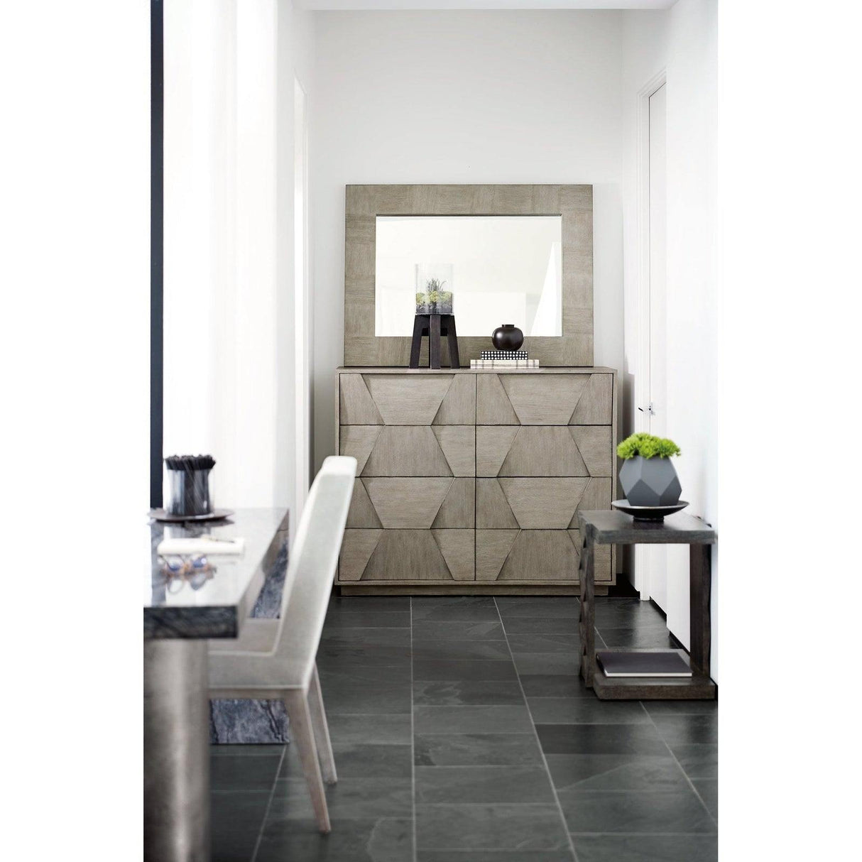 - Open front-to-back case with dimensional fancy face veneers on both sides