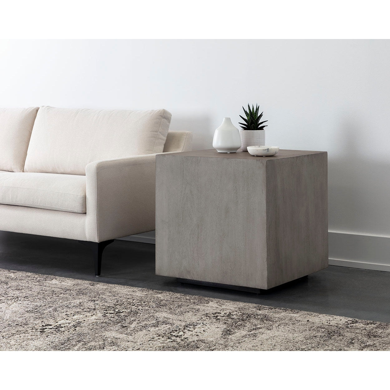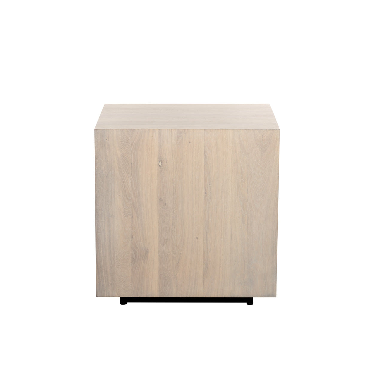 Minimalist in design, this square side table offers an effortlessly modern appeal. Crafted from solid light oak wood with a whitewash finish. Also available in grey mango wood. Coffee table version also available. As wood is an organic, porous material, these pieces will contain natural variation of texture and may also exhibit fine indentations and cracks. Wood pieces will also display a disparity of colour and grain, and visible knots and burls that add to the character of each piece.
