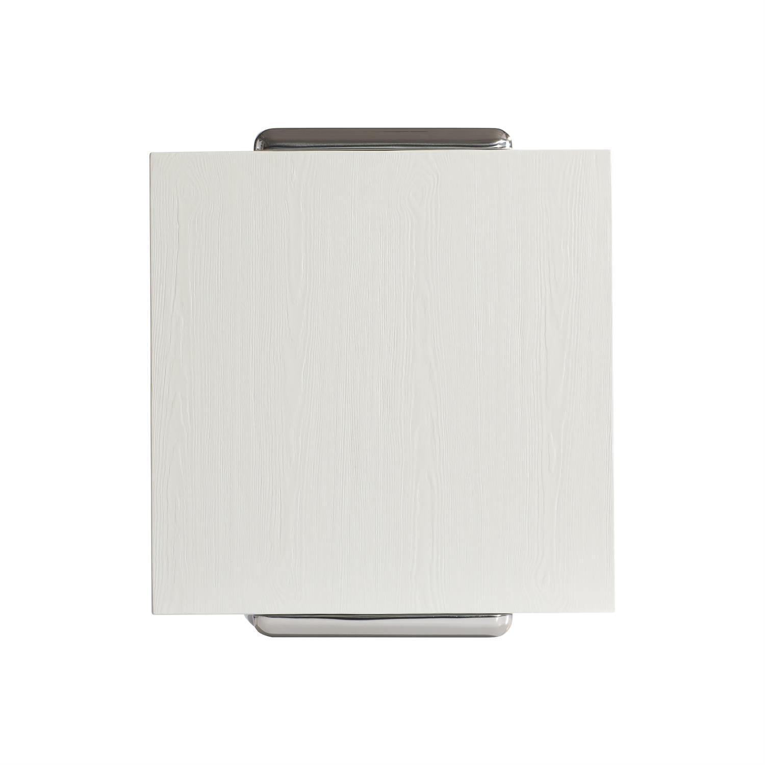 - Two offset, shaped stainless steel supports offer drama on the Yuma side table.