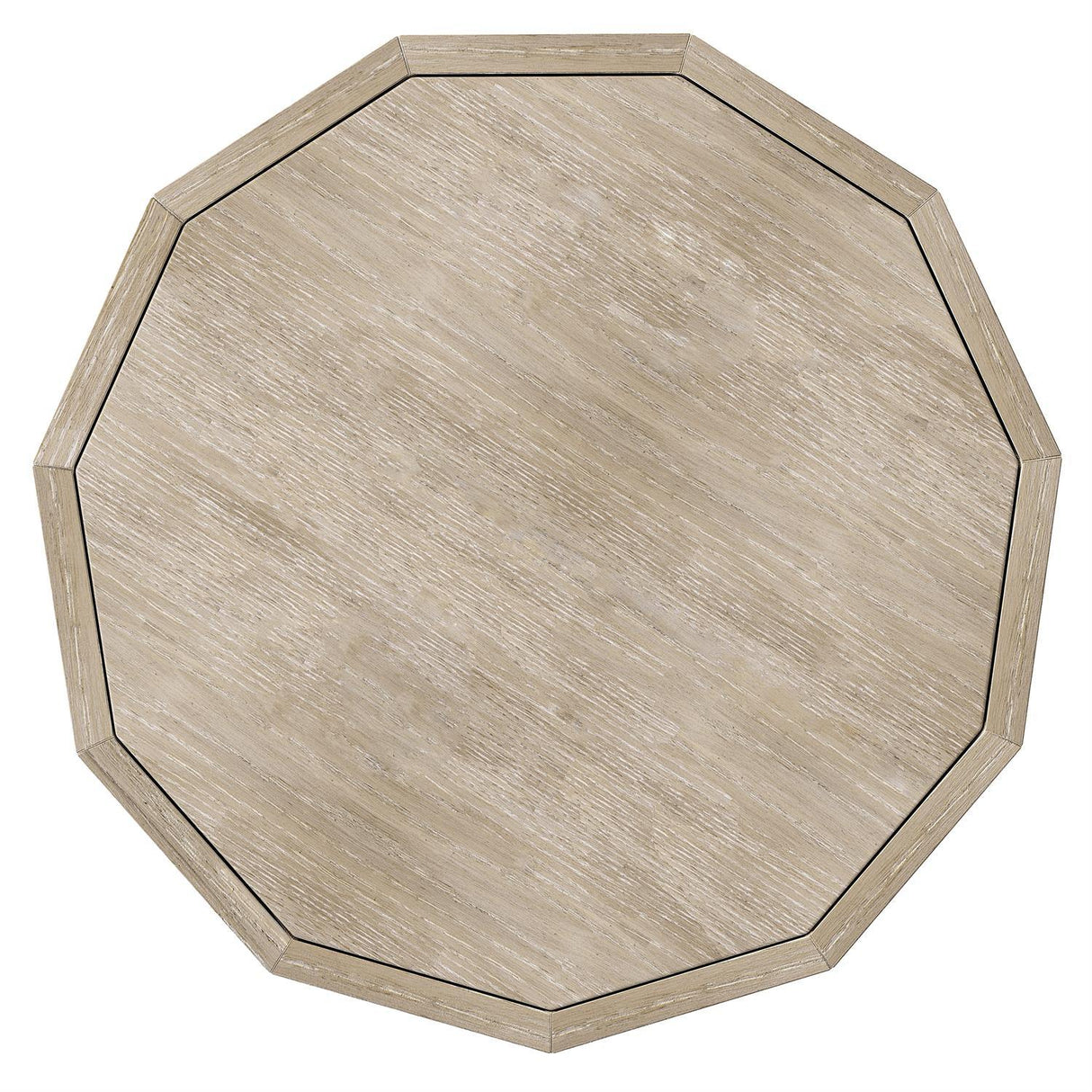 - The wood-look round table is formed in cast resin with a Tawny finish, and a coffered design around the sides.