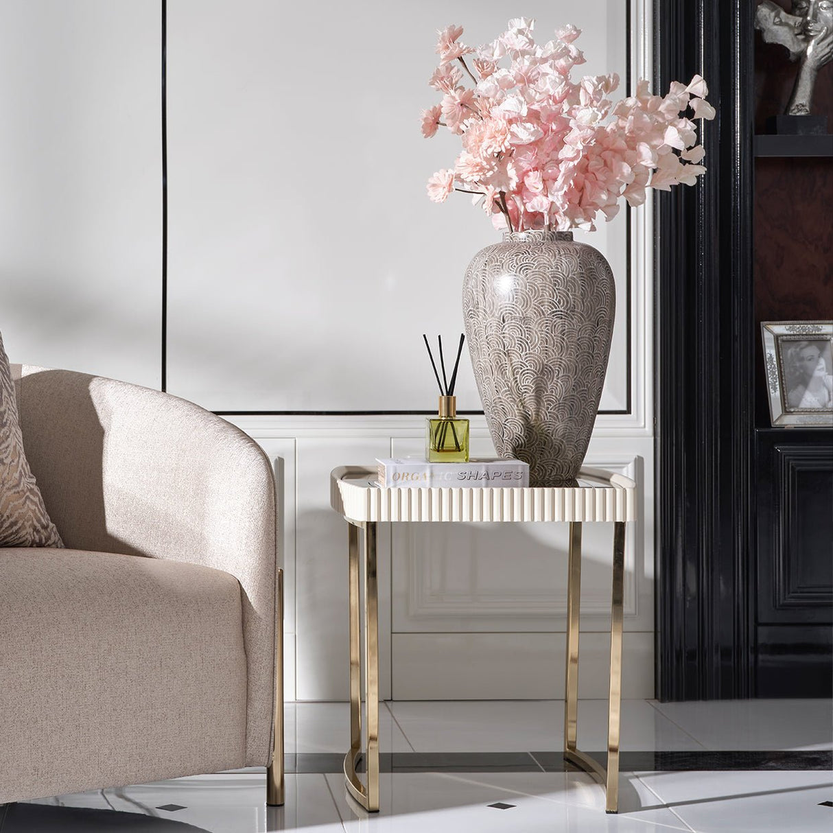 The Lisbon Side Table is perfect for interior designers, modern homeowners, and luxury furniture collectors who value sculptural form and refined detailing. Whether complementing a designer sofa or illuminating a hallway, it brings balance, contrast, and elevated craftsmanship to any space.