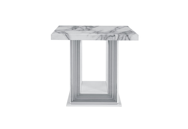 Discover the Ylime Occasional Collection by Global Furniture USA, a modern ensemble designed to infuse your space with elegance and contemporary flair. Each piece showcases a brilliant white faux marble top, exuding luxury and sophistication. The pristine surface is perfectly complemented by a chic white and chrome base, delivering a sleek, two-tone aesthetic. This collection, featuring coffee, end, and console tables, promises not only to enchant with its visual allure but also to provide unparalleled functionality and durability. Whether anchoring your living room or adding a touch of class to other areas of your home, the Ylime Collection is poised to elevate your interior with its timeless design and modern sophistication. Transform any room with this stunning array of statement pieces, meticulously crafted for those with discerning tastes.