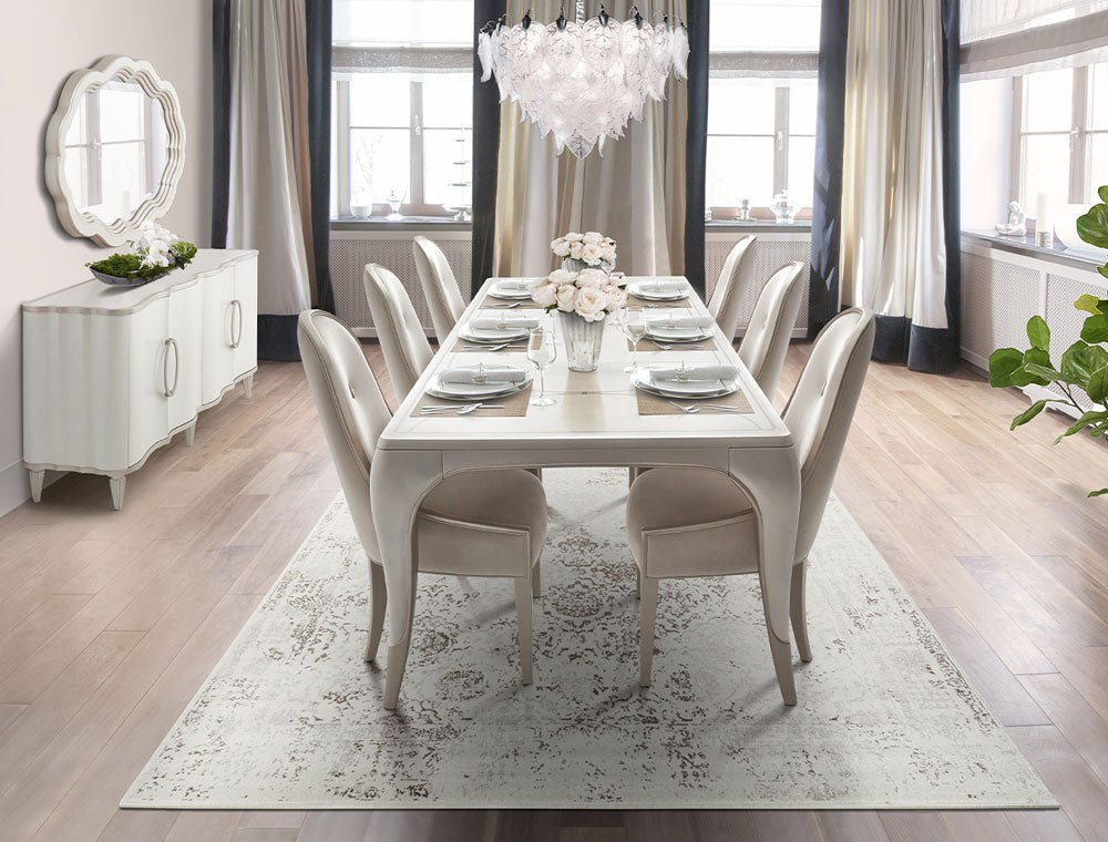 Make a lasting impression with the London Place Dining Side Chairs by AICO. Designed with graceful sloped arms, velvet upholstery, and elegant platinum finishes, these chairs deliver timeless glamour to your dining space. A tall, rounded backrest with a diamond tuft adds a touch of tailored luxury, while the curved silhouette invites guests to sit and stay a while. Sold as a set of 2, these chairs are perfect for elevating modern glam interiors.