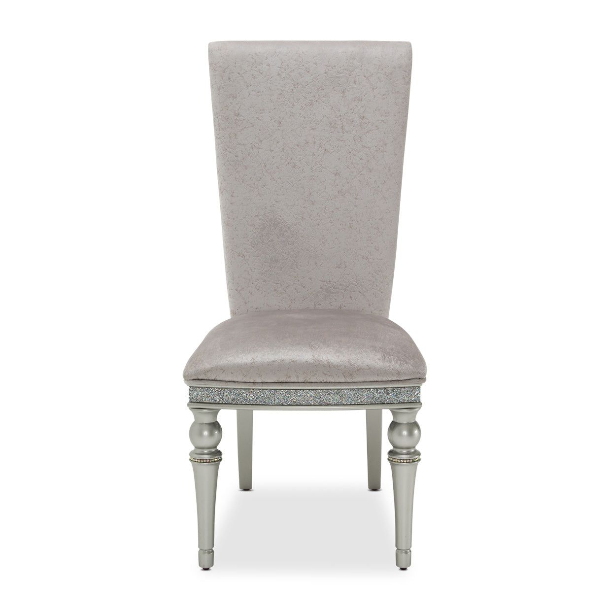 - Dove finish with chrome-like sheen and crystal mesh accents