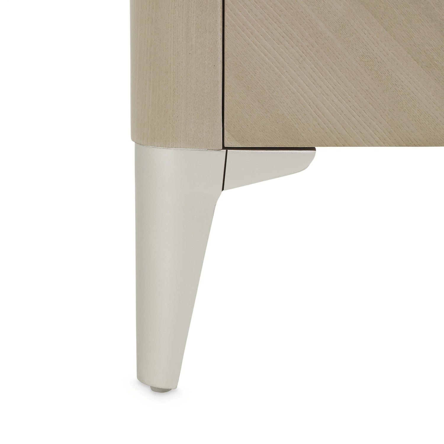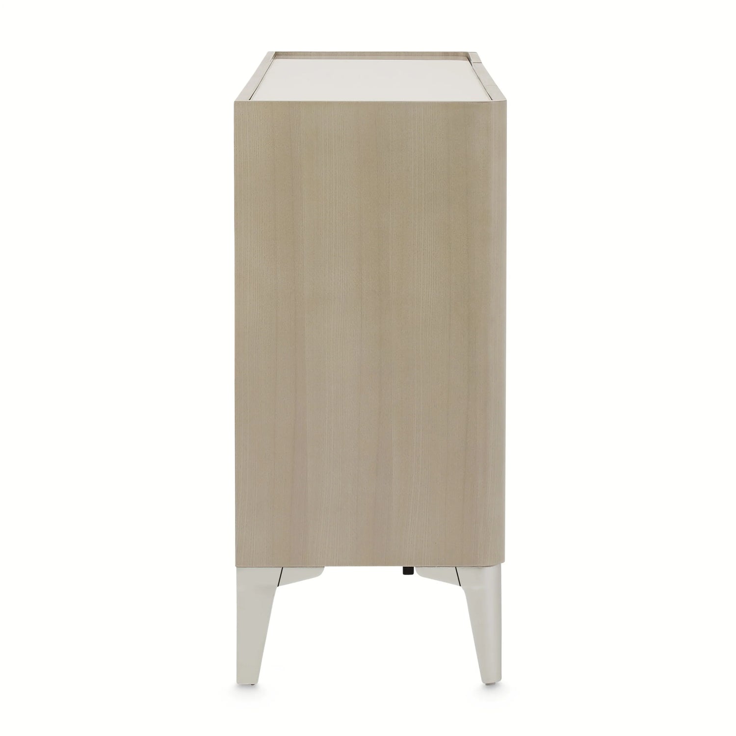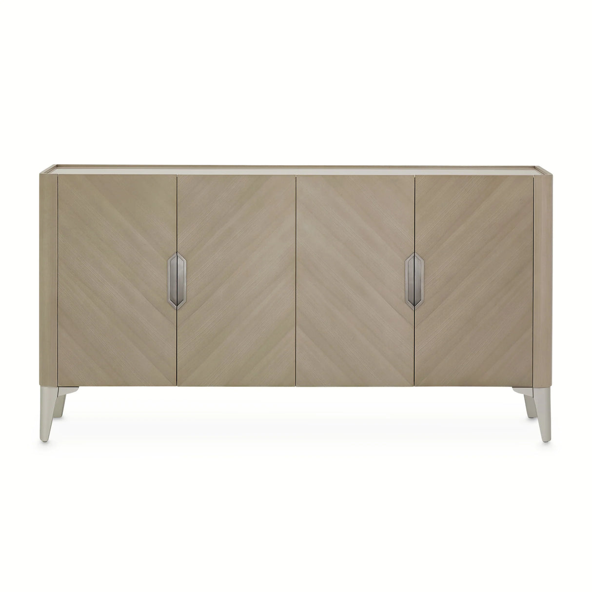 Clean-lined contemporary design meets luxury craftsmanship. This Penthouse Sideboard by Michael Amini features an elegant Ash Gray finish with silver mist accents, combining sleek geometry with upscale materials for standout sophistication.