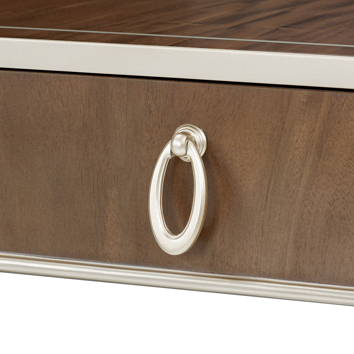 - Chardonnay-painted trim, feet, and hoop drawer pulls