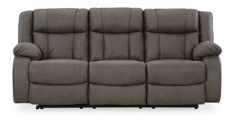 First Base Reclining Sofa Gunmetal Faux Leather – Ashley Furniture