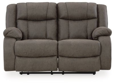 Ashley Gunmetal First Base Reclining Loveseat - Faux Leather