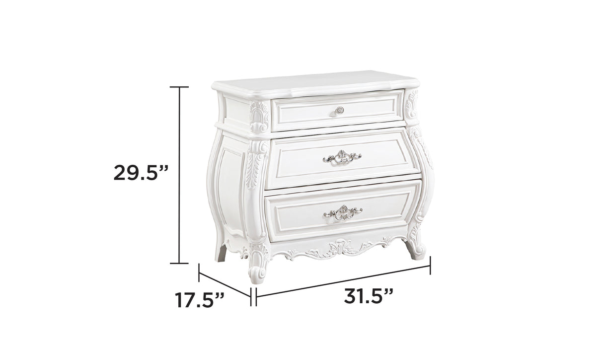 - Spacious Storage: The dresser features ornate drawer details, offering ample storage.