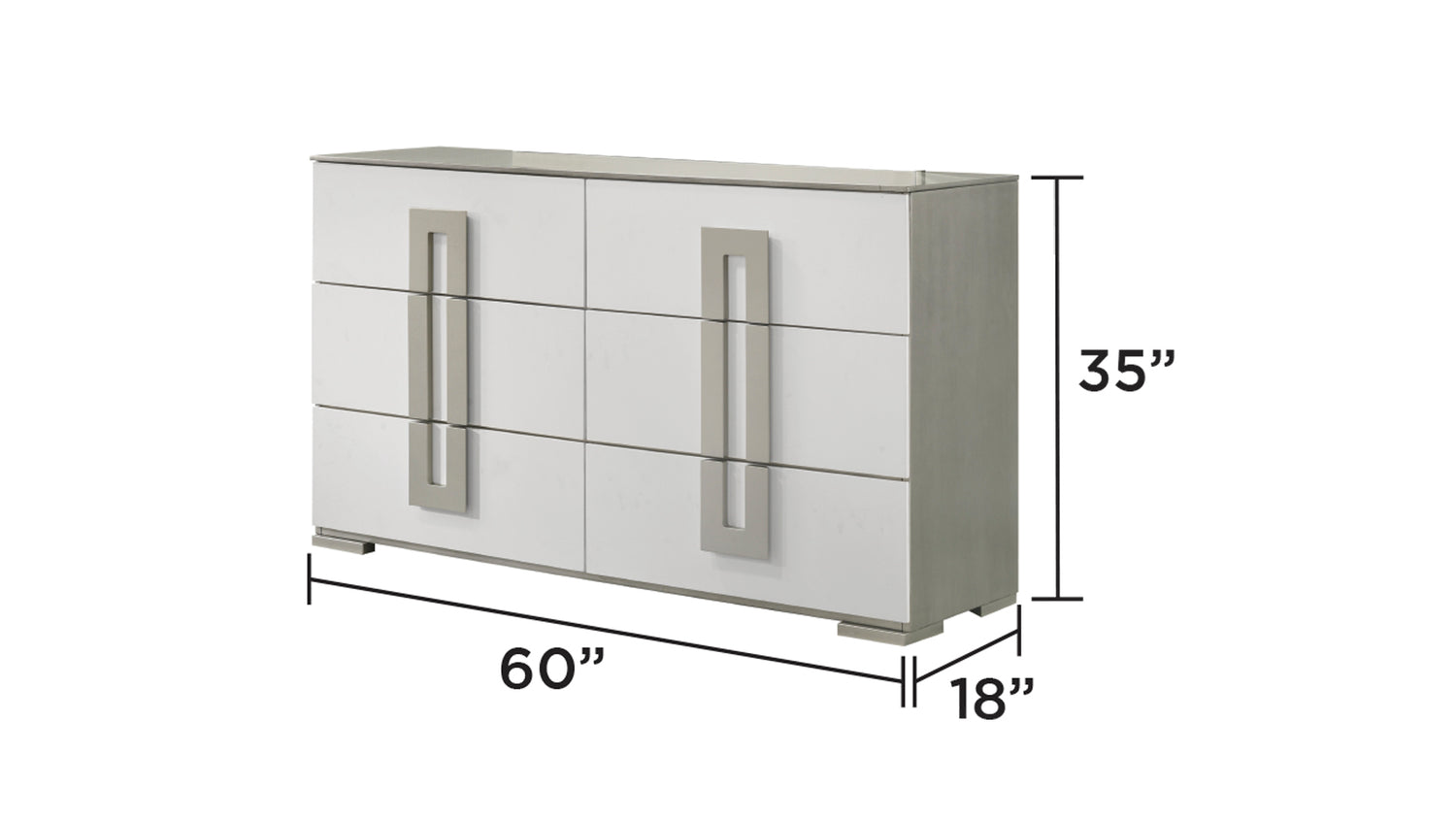 Transform your bedroom into a contemporary oasis with this sleek White bedroom set, featuring a bed, dresser, mirror, chest, and nightstand. The LED-lit headboard adds a touch of modern sophistication, while the clean lines and minimalist design make this set a perfect fit for any modern home. The soft gray tones create a calming atmosphere, ensuring a restful night's sleep. Each piece is crafted for both style and functionality, offering ample storage space with a polished, high-end finish.