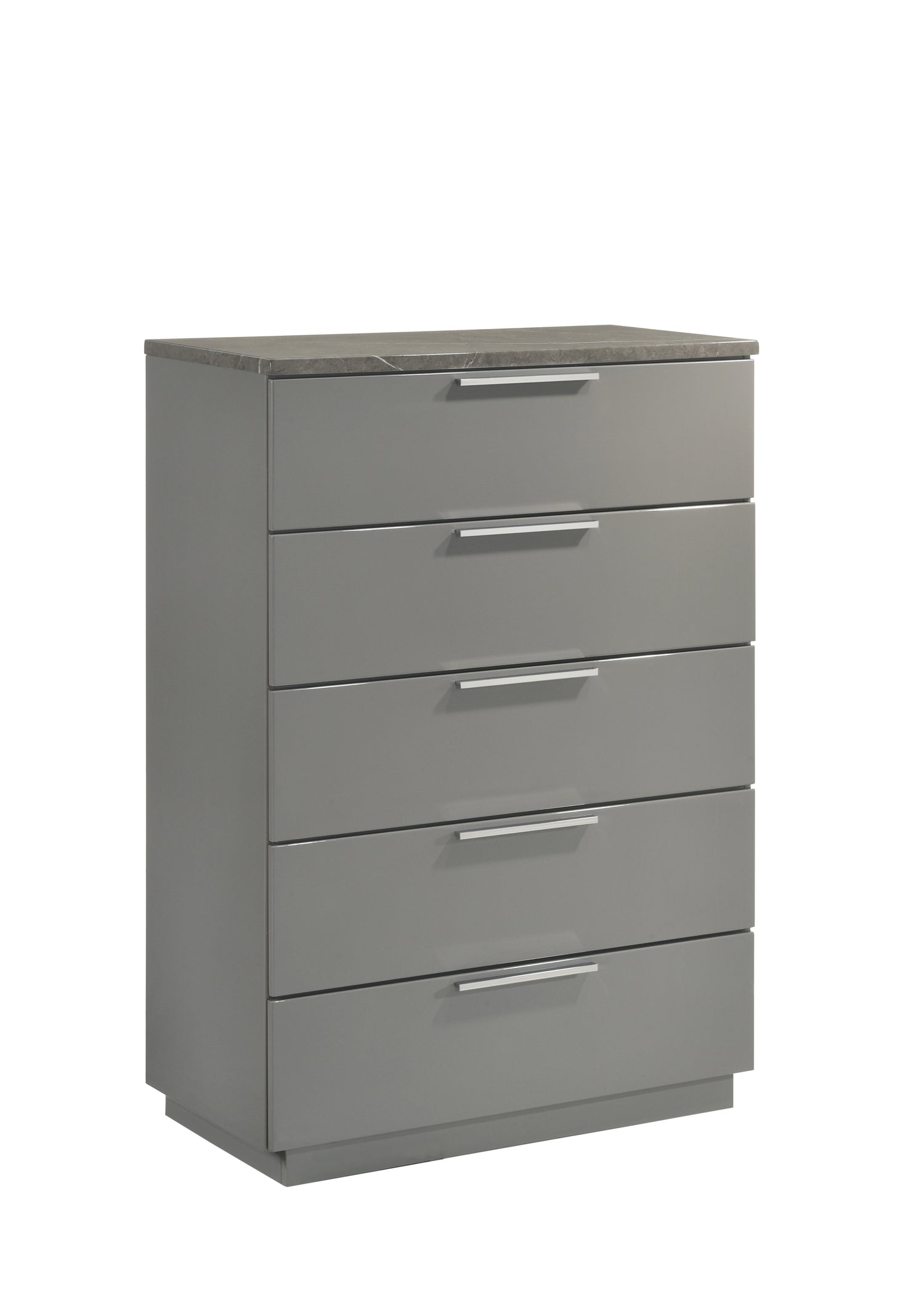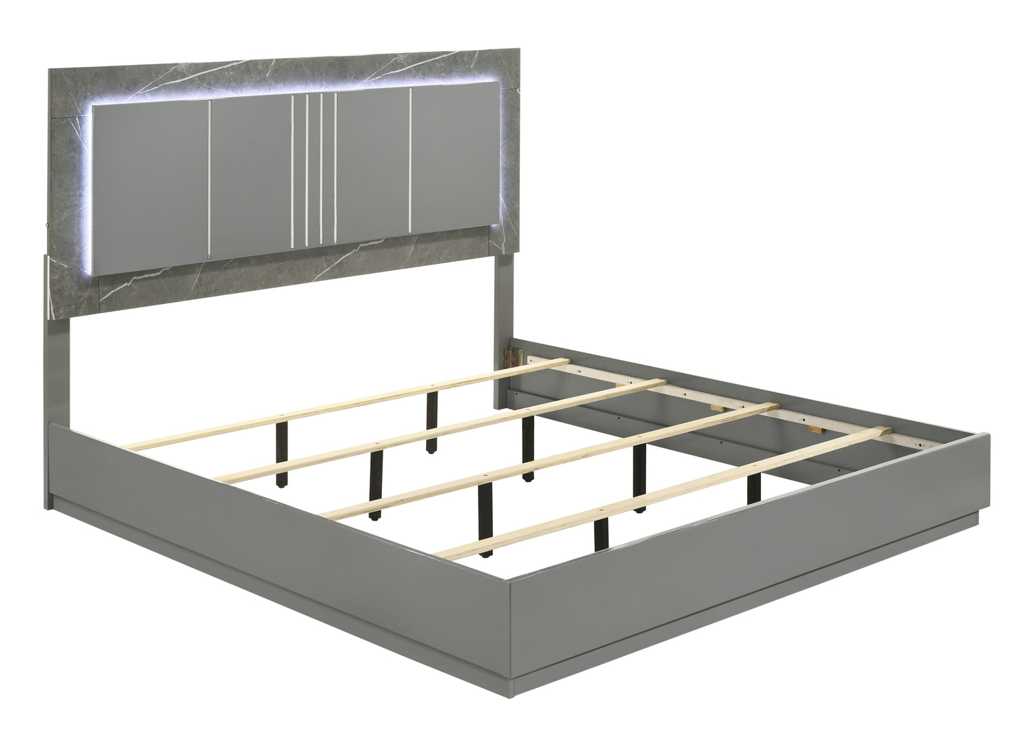 Elara Queen 5-Piece Set – Two-Tone High-Gloss Marble & Lacquer Finish with LED Lighting, Metal-Finished Legs, Spacious Storage- Gray (NJ Inventory)