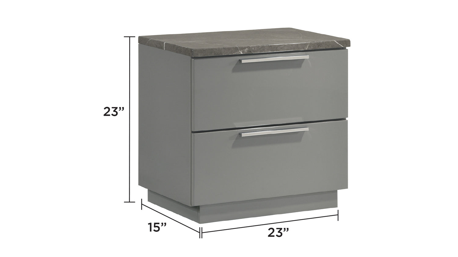 Elara Queen 5-Piece Set – Two-Tone High-Gloss Marble & Lacquer Finish with LED Lighting, Metal-Finished Legs, Spacious Storage- Gray (NJ Inventory) is available