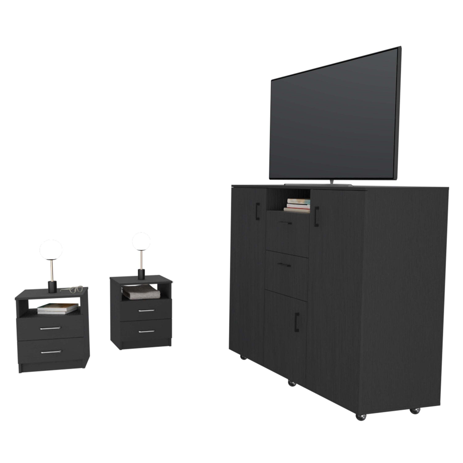 3 Piece Bedroom Set, Milano Double Door Cabinet Dresser + 2 Salento Nightstands, Black is available