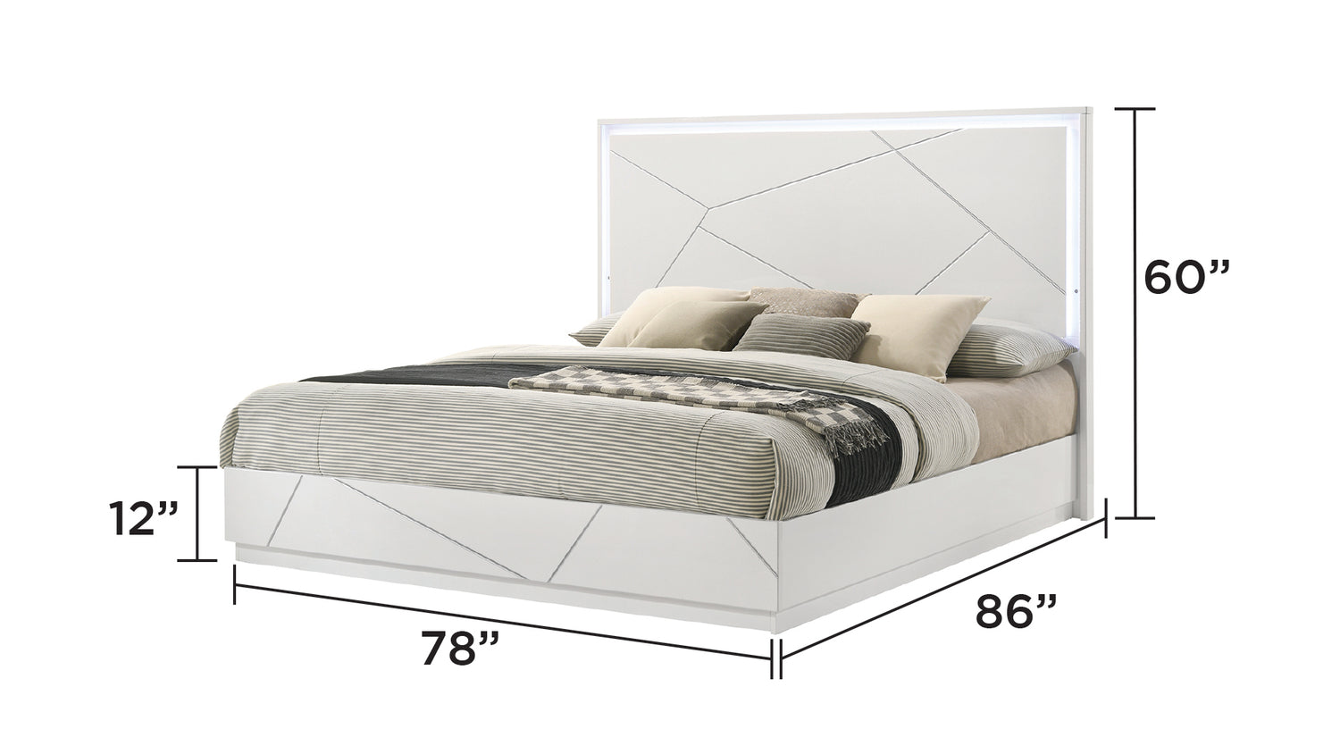 Manhattan King 4-Piece Bedroom Set – Modern Design with Lacquer Finish, Geometric Accents, and LED Lighting (NJ Inventory) is available