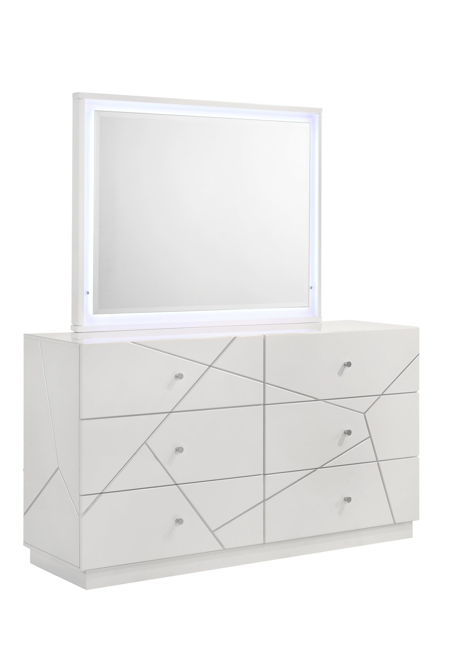 Manhattan King 4-Piece Bedroom Set – Modern Design with Lacquer Finish, Geometric Accents, and LED Lighting (NJ Inventory)