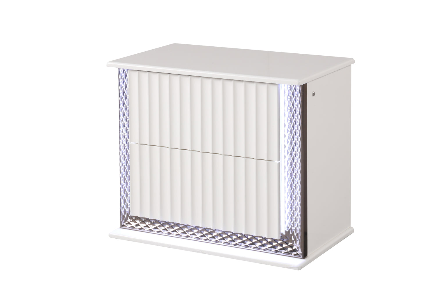 Fabio Contemporary Style Queen 5PC Bedroom set Made with Diamond-Shaped Side Accents, LED Lighting and Wood in White Finish (NJ INVENTORY) is available