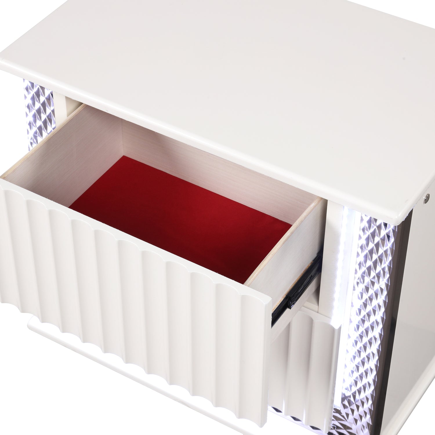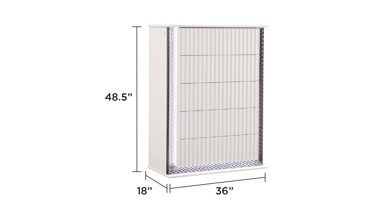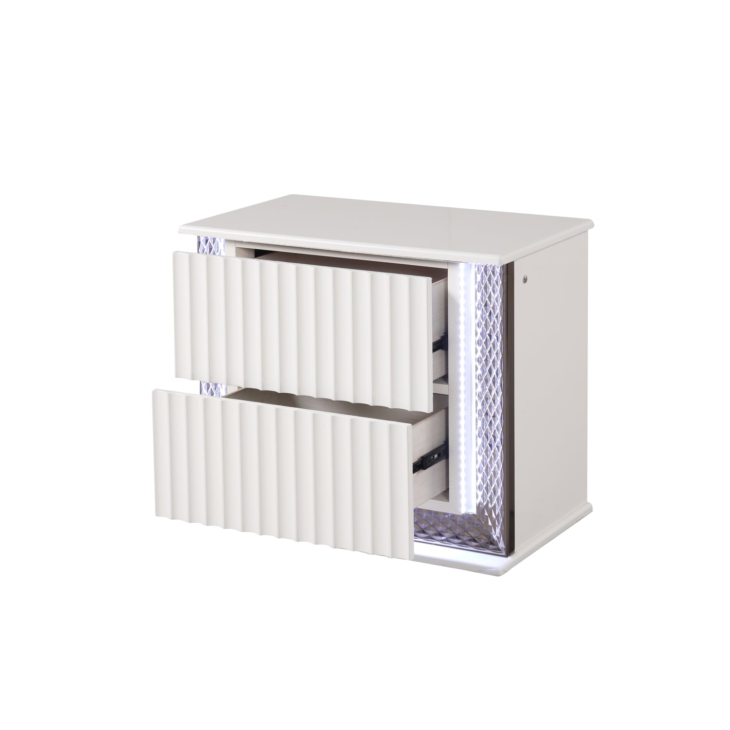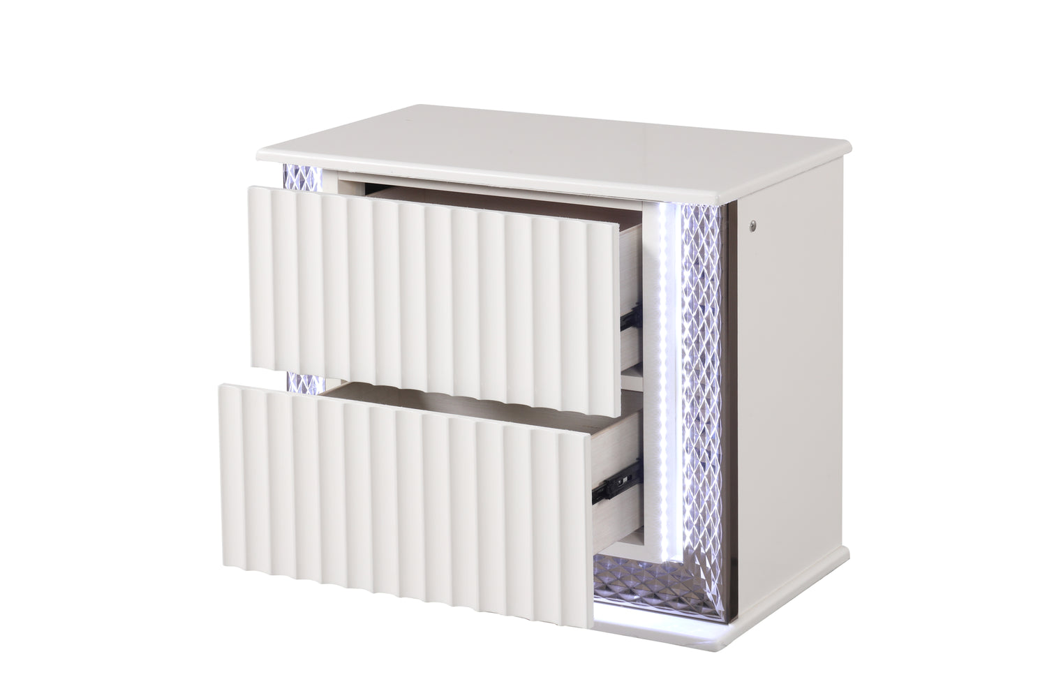 Fabio Contemporary Style Queen 5PC Bedroom set Made with Diamond-Shaped Side Accents, LED Lighting and Wood in White Finish (NJ INVENTORY)
