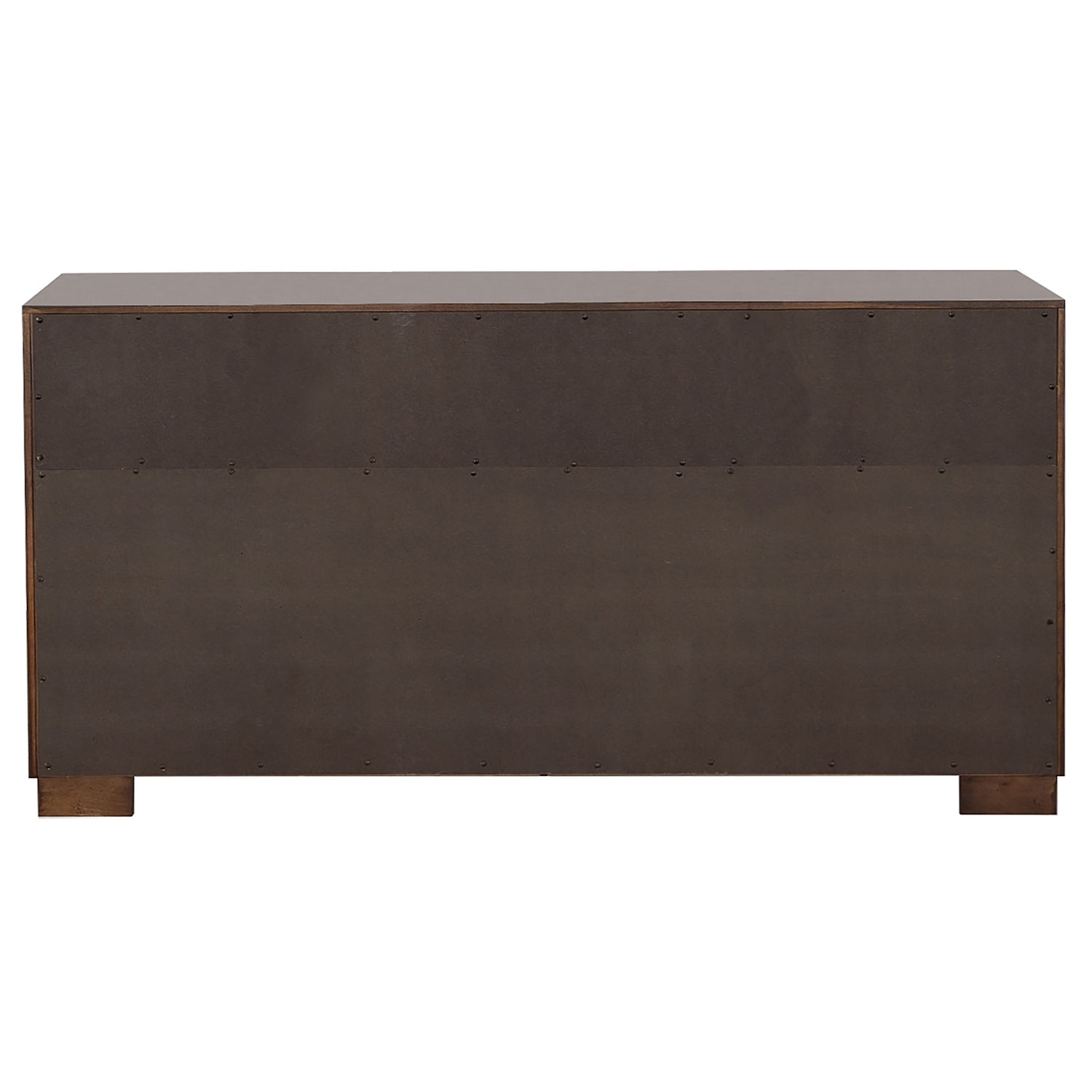 • Silver-tone bar handles on drawers enhance functionality while adding a sophisticated metallic accent to the design