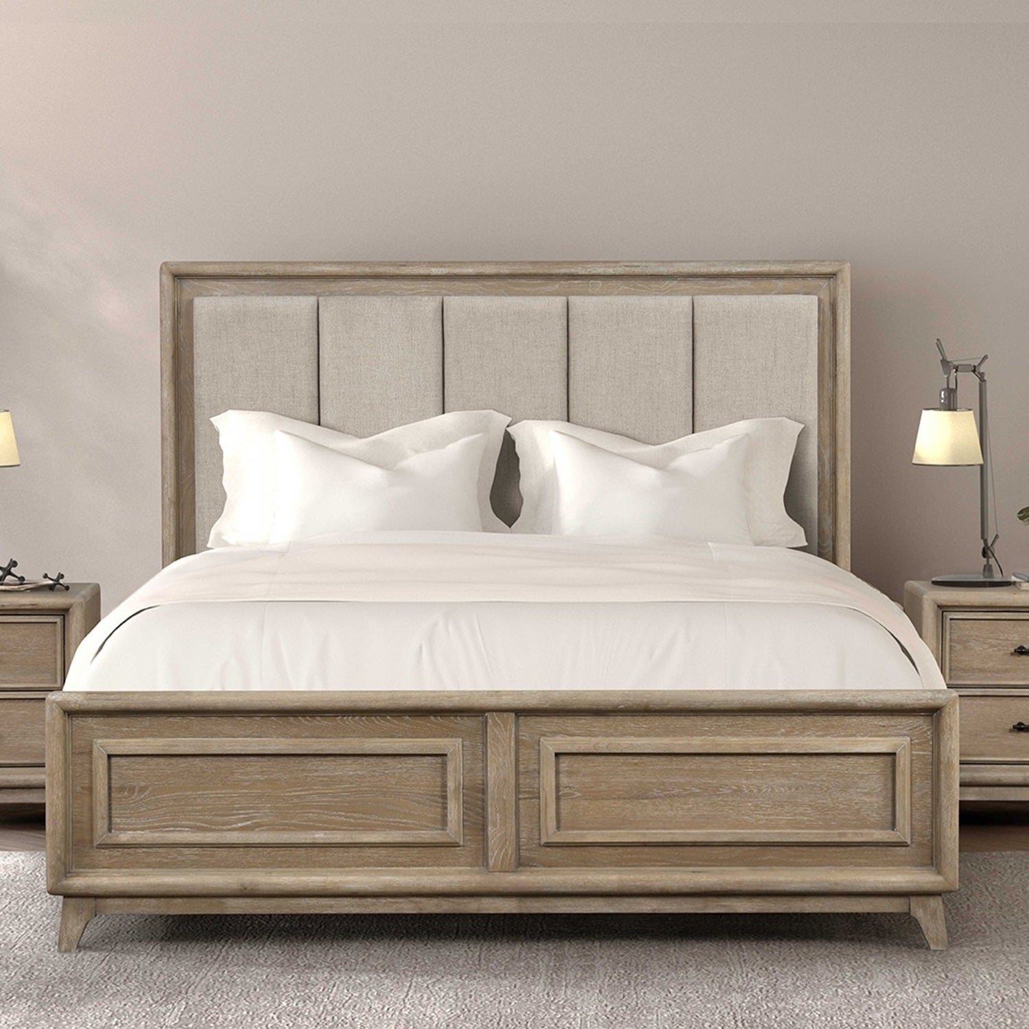 Eastern King Size 3pc Bedroom Set with Channel-Padded Headboard in Oak Finish, Solid Rubberwood Frame, 2x Nightstands is available