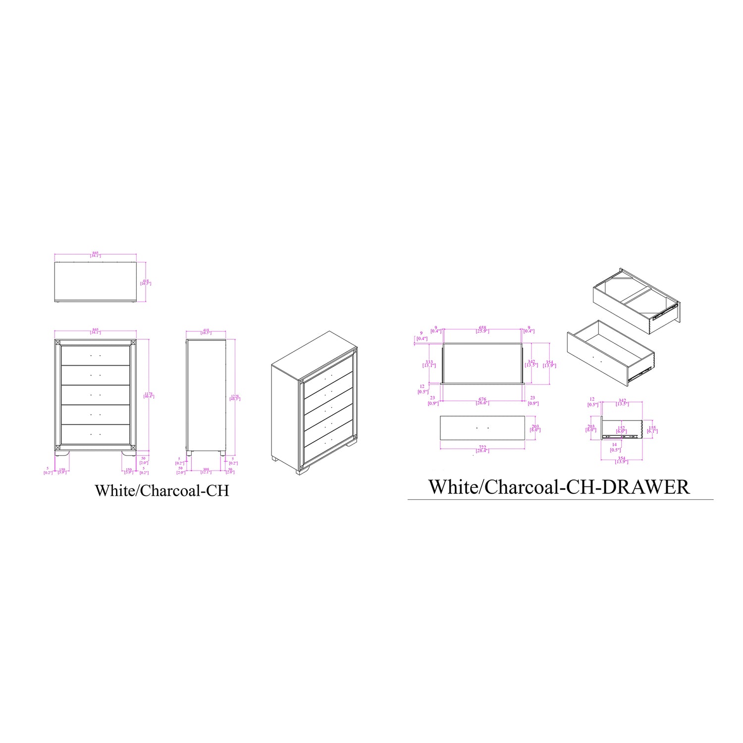 - 5PC Set includes: Bed, Chest.Dresser, Nightstand, Mirror