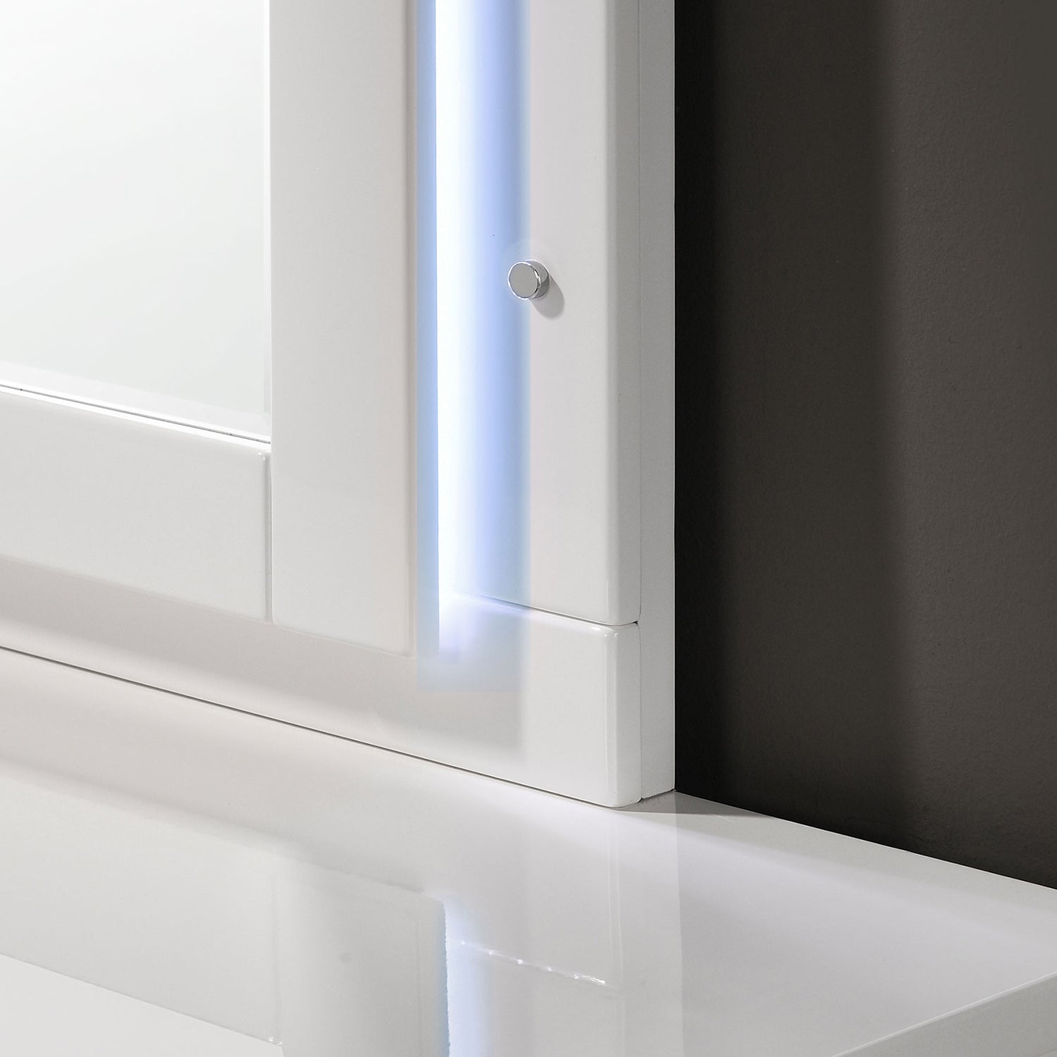 - LED dresser mirror features perimeter lighting with touch sensor activation, enhancing functionality and stylish appeal