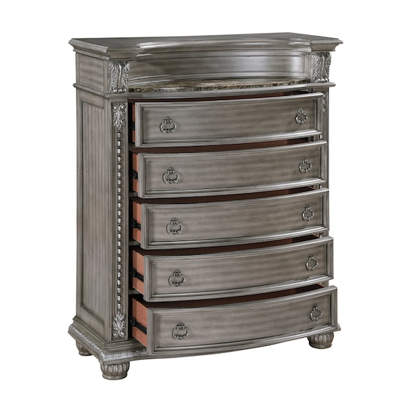 Bennington Gray Sleigh Bed Bedroom Set with Marble Tops – Homelegance