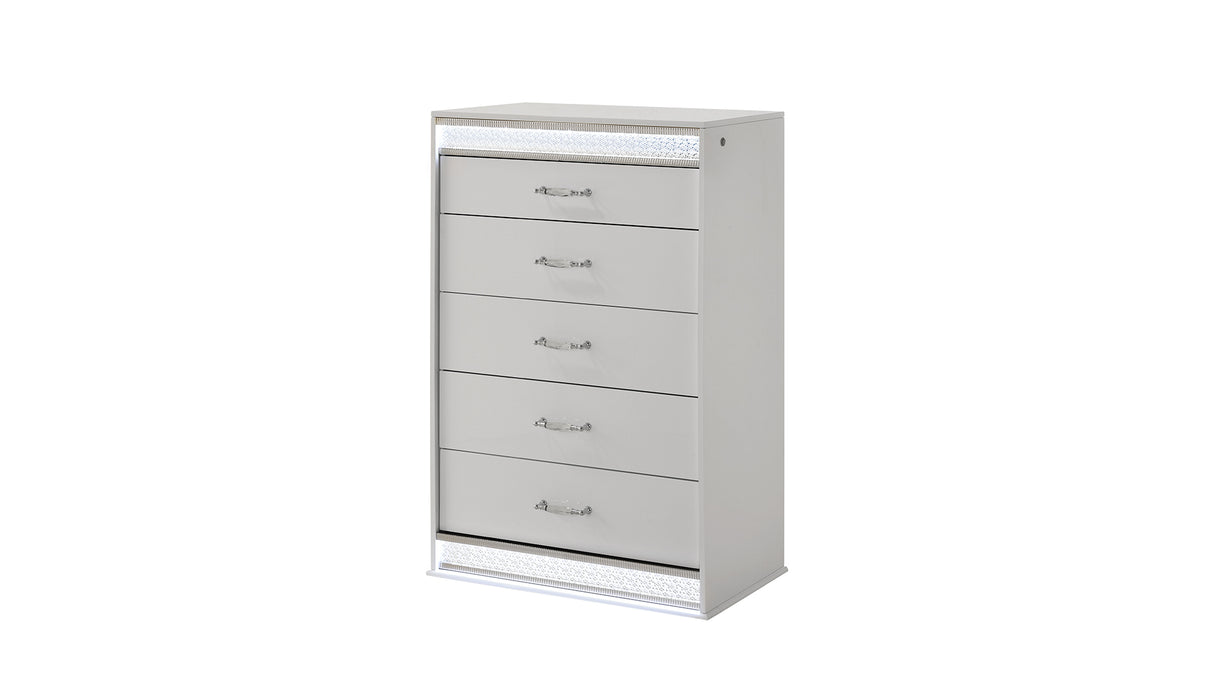 Glam Modern Style 5 Pc Queen Bedroom Set with LED Headboard Made with Wood in White