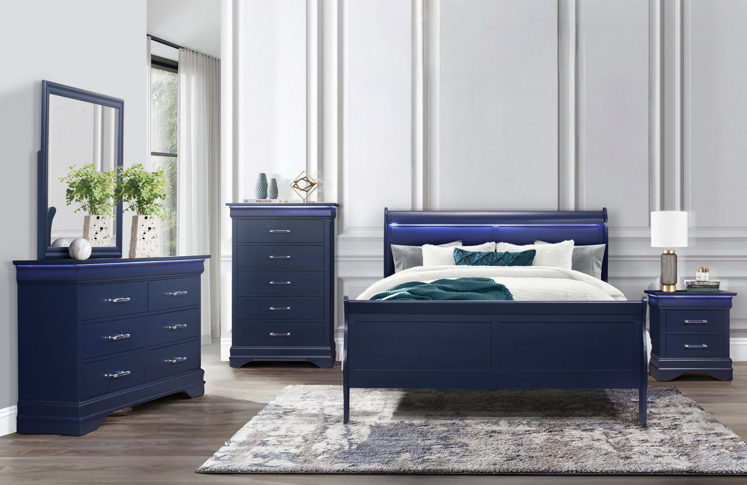CHARLIE BLUE QUEEN BED GROUP WITH LED