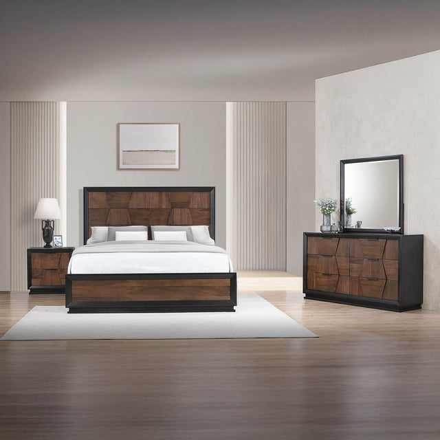 Houston Traditional Style King 4 Piece Bedroom Set in Walnut