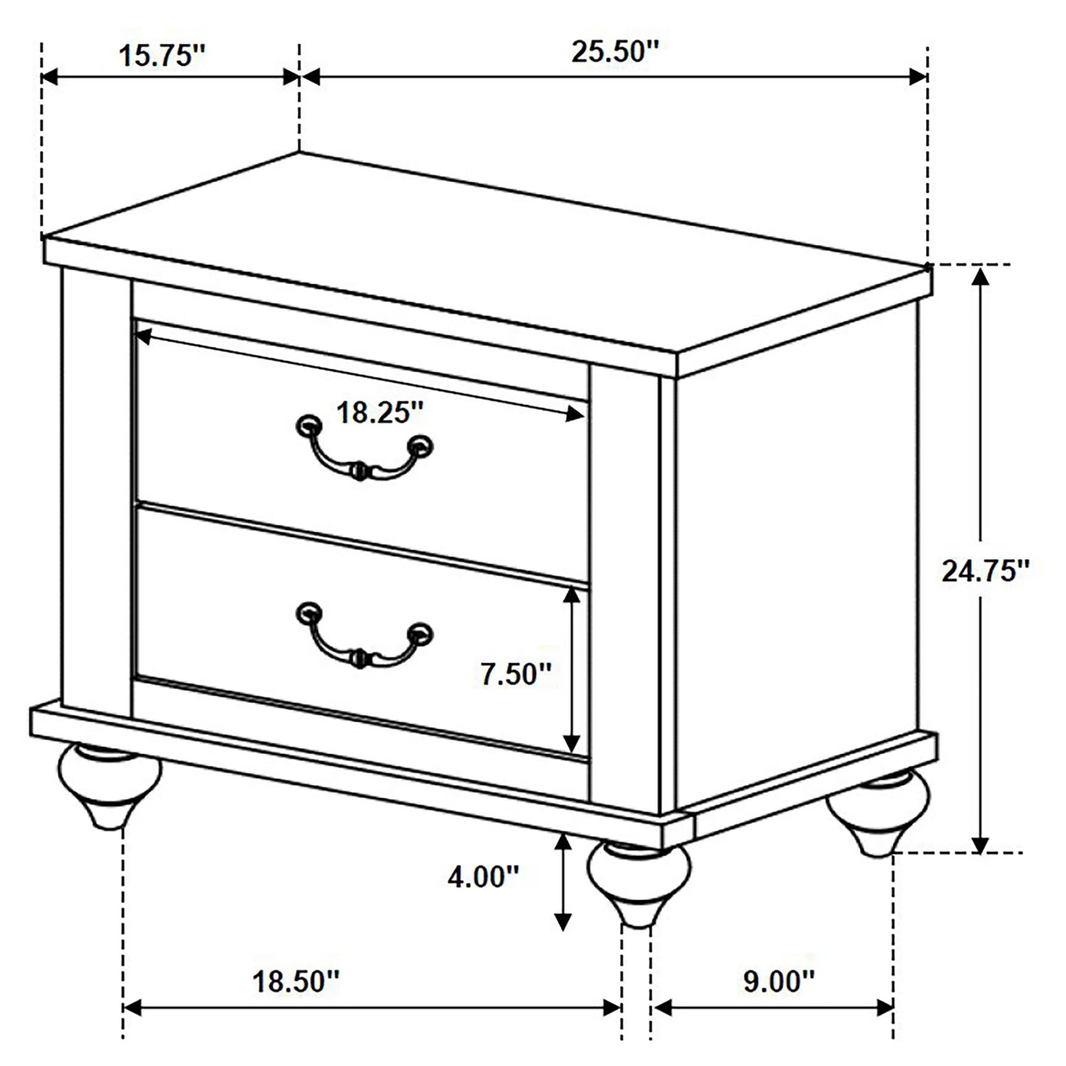 Nightstand: 25.5"'W x 16.25"D x 24.75"'H