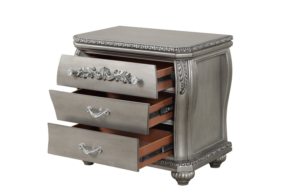 Destiny Traditional Style 4 Pc King Bedroom Set With Upholstered Crystal-Tufted bed Made with Wood in Silver