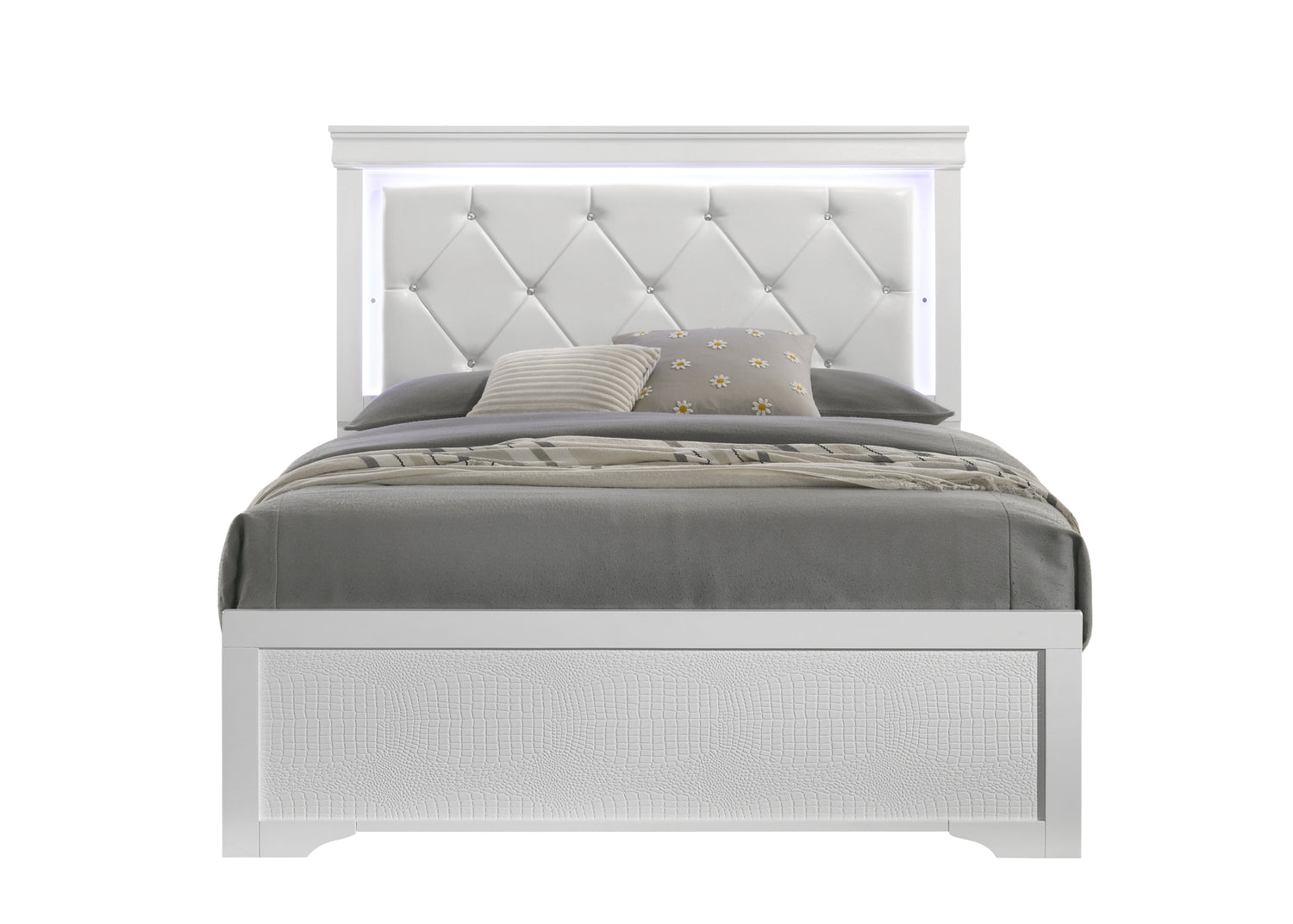 Blaze Upholstered Modern Style 5 Pc King Bedroom Set with LED Headboard Made with Wood in White(CA INVENTORY) is available