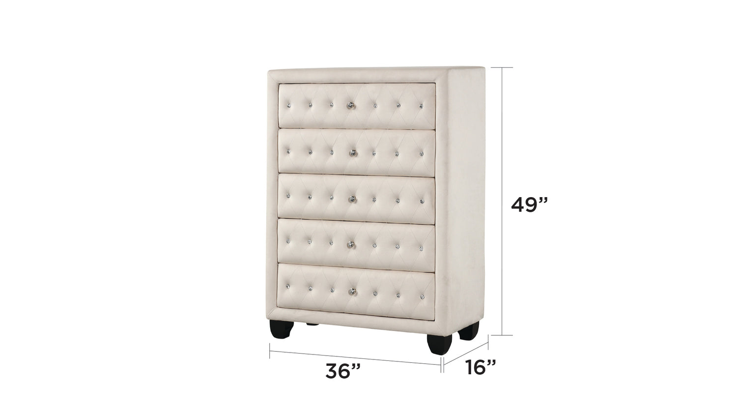 Encore Modern Style Tufted and Upholstered King 5PC Bedroom set made with wood in Beige(NJ Inventory)