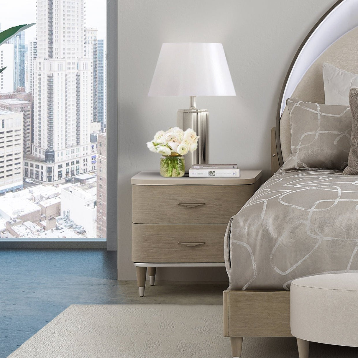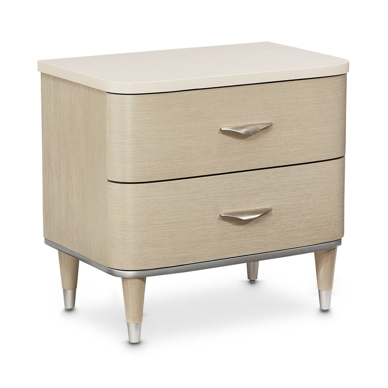 Refined curves, luminous finishes, and multifunctional elegance. The Eclipse Nightstand by AICO Furniture brings high-end modern flair to your space. Designed to function as a nightstand, accent cabinet, or end table, this versatile piece blends soft geometry with luxurious materials. The smooth Moonlight finish, cultured marble top, and brushed nickel hardware deliver statement-making sophistication in every detail.