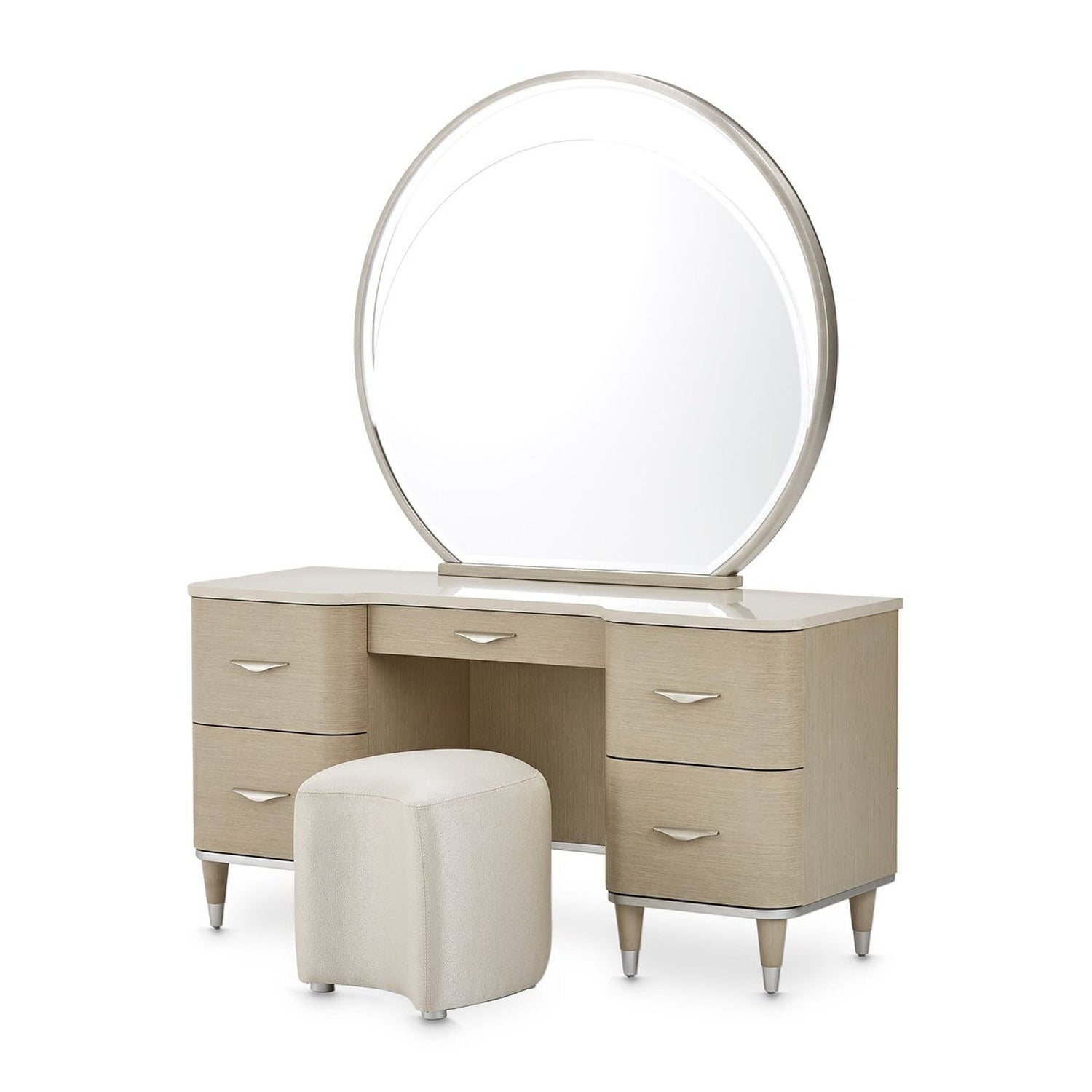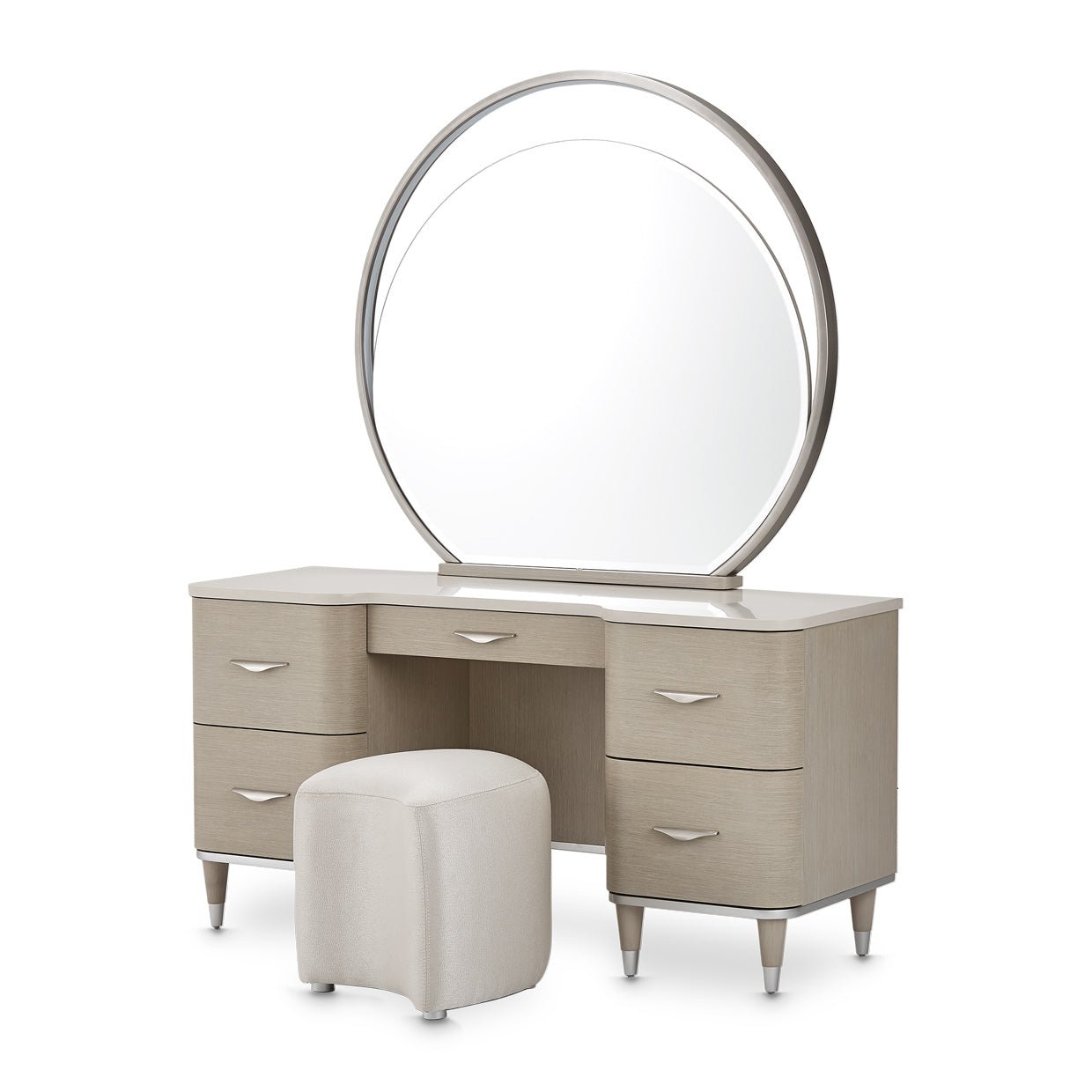 Mirror Eclipse Vanity Desk Mirror & Stool 3 Pc - Aico Furniture