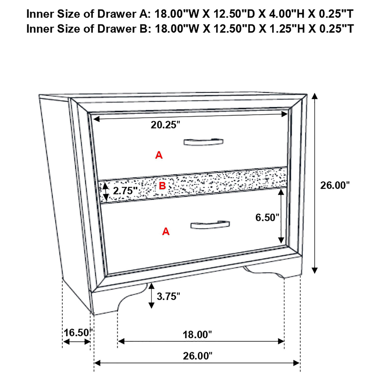 • Nightstand and dresser feature glitter trim with jewel-inspired bar pulls on drawer fronts