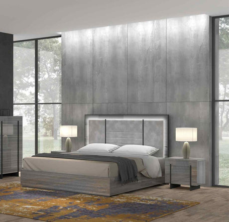 Stoneage 5 Piece King Bedroom Set In Light Grey Lacquer - 17455K-5Set | J&M
