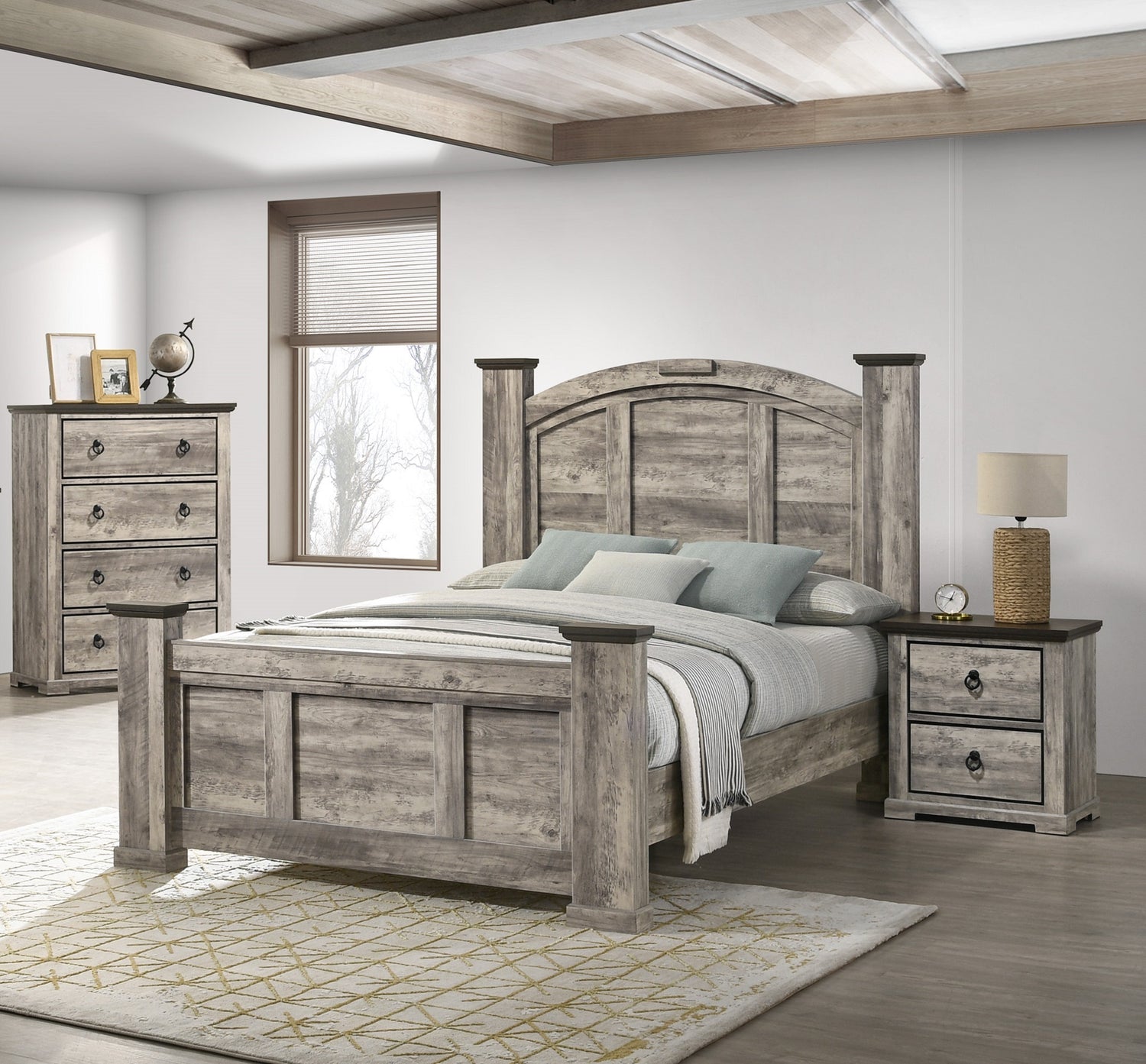 Contemporary 1pc King Size Poster Bed Gray Finish Wooden Bedroom Furniture