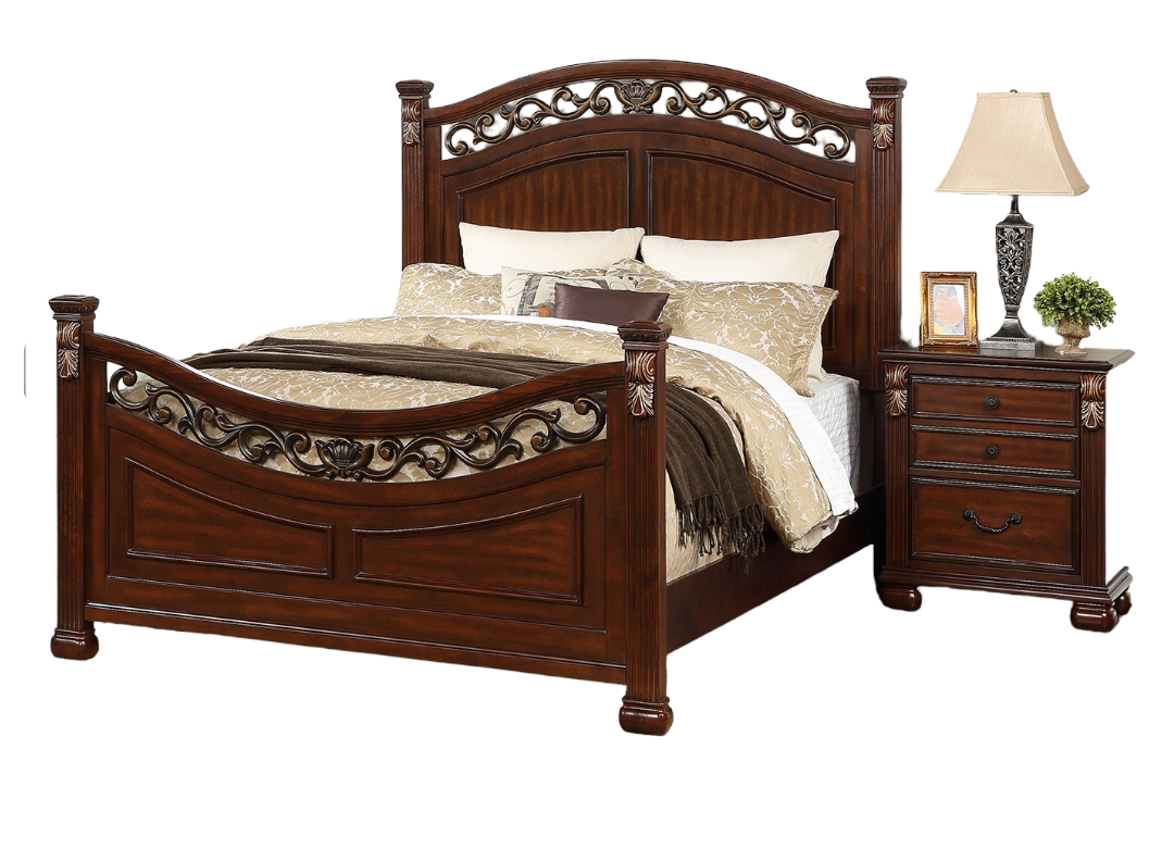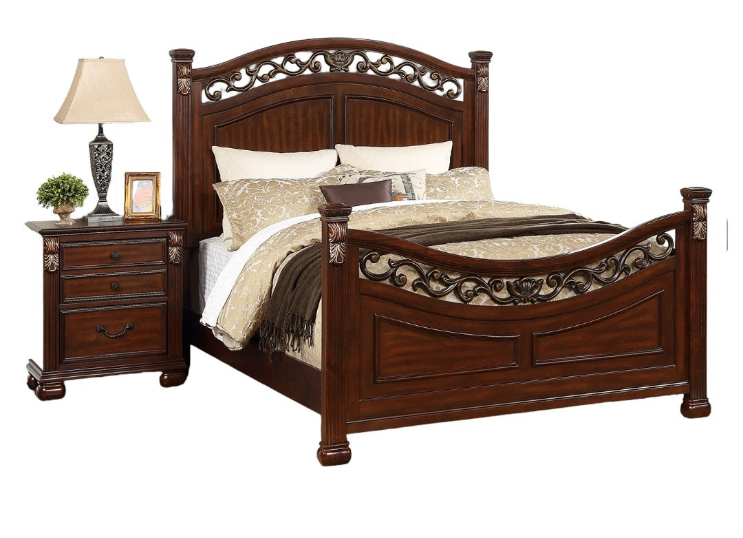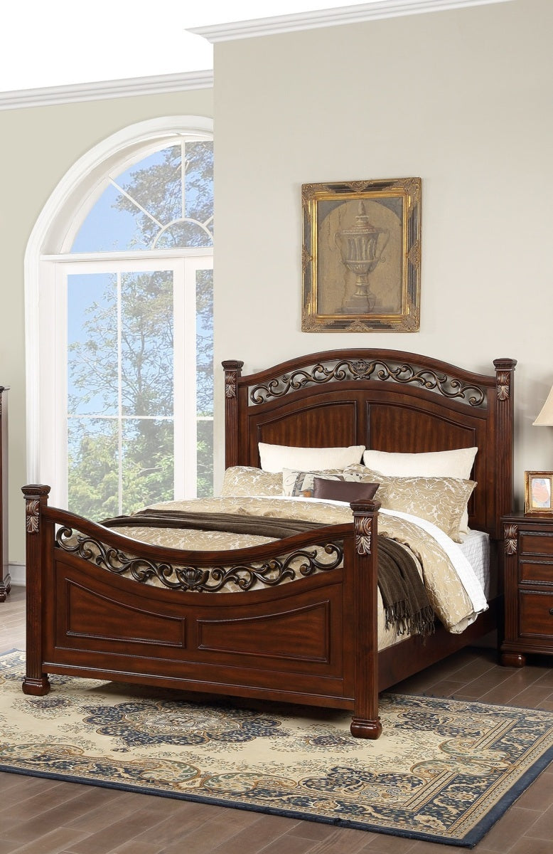 Traditional Style Queen Size Bed 1pc Two Panel Bed Bun Feet dark Cherry Finish Bedroom Furniture is available