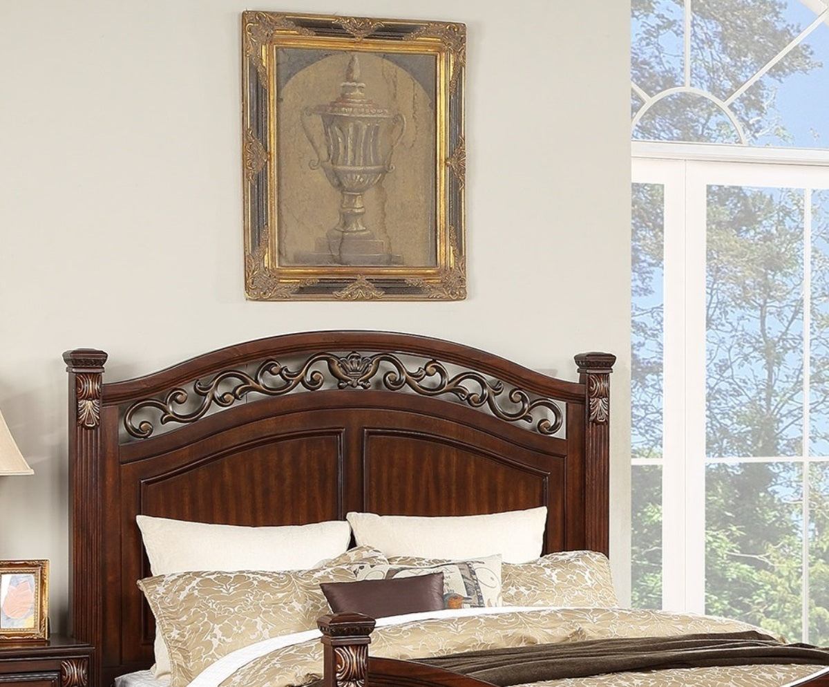 Traditional Style Queen Size Bed 1pc Two Panel Bed Bun Feet dark Cherry Finish Bedroom Furniture