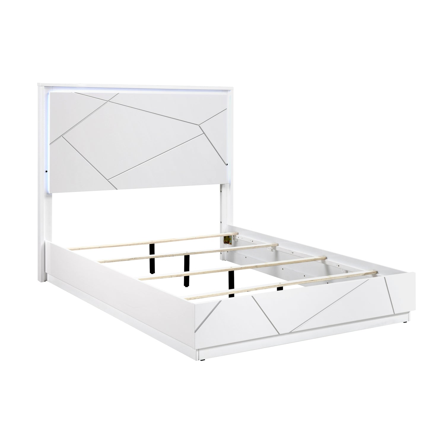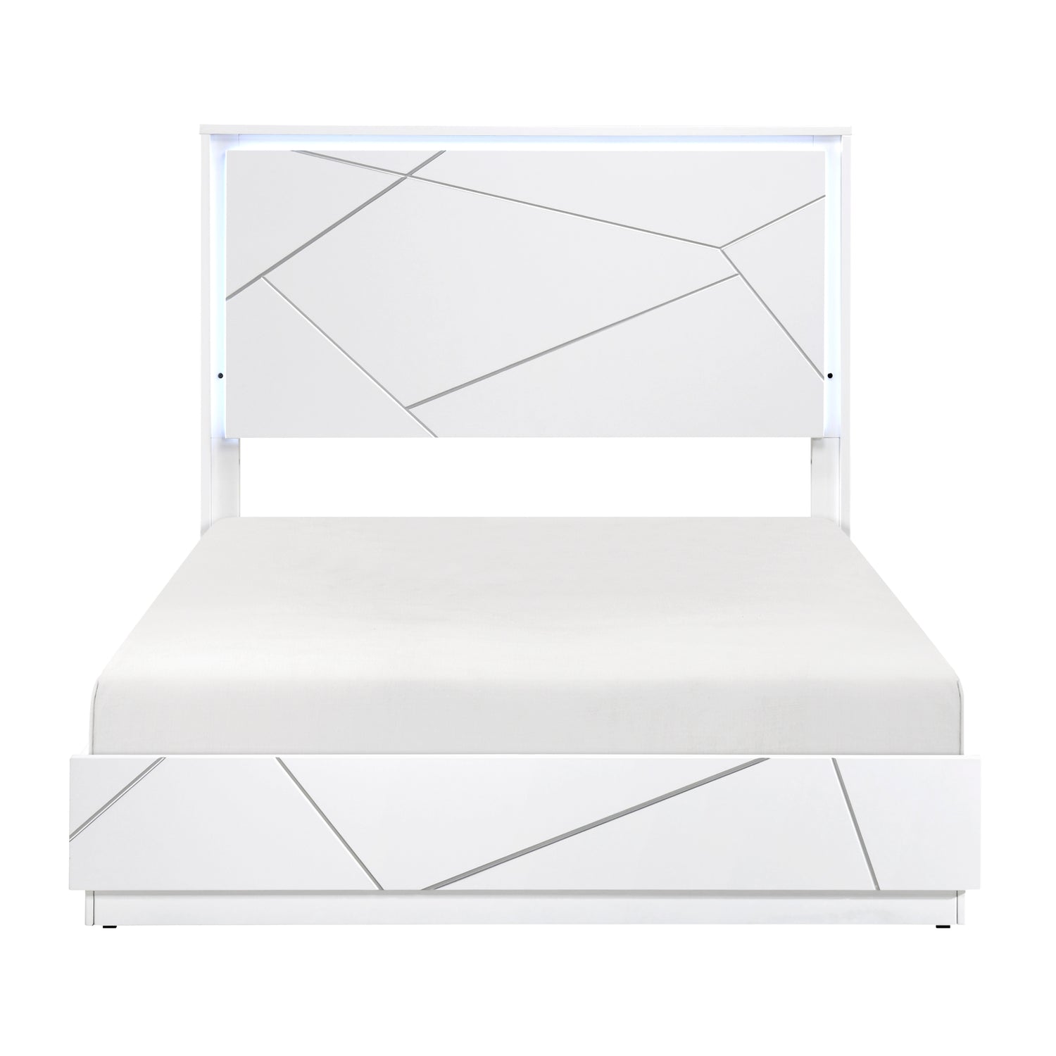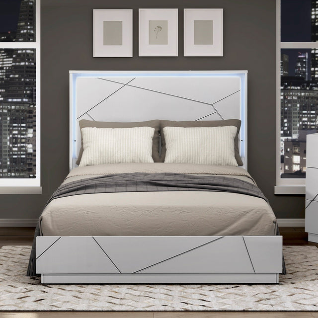 Glamorous White Finish King Size LED Light Headboard Bedroom Furniture 1pc Geometric Design Accents