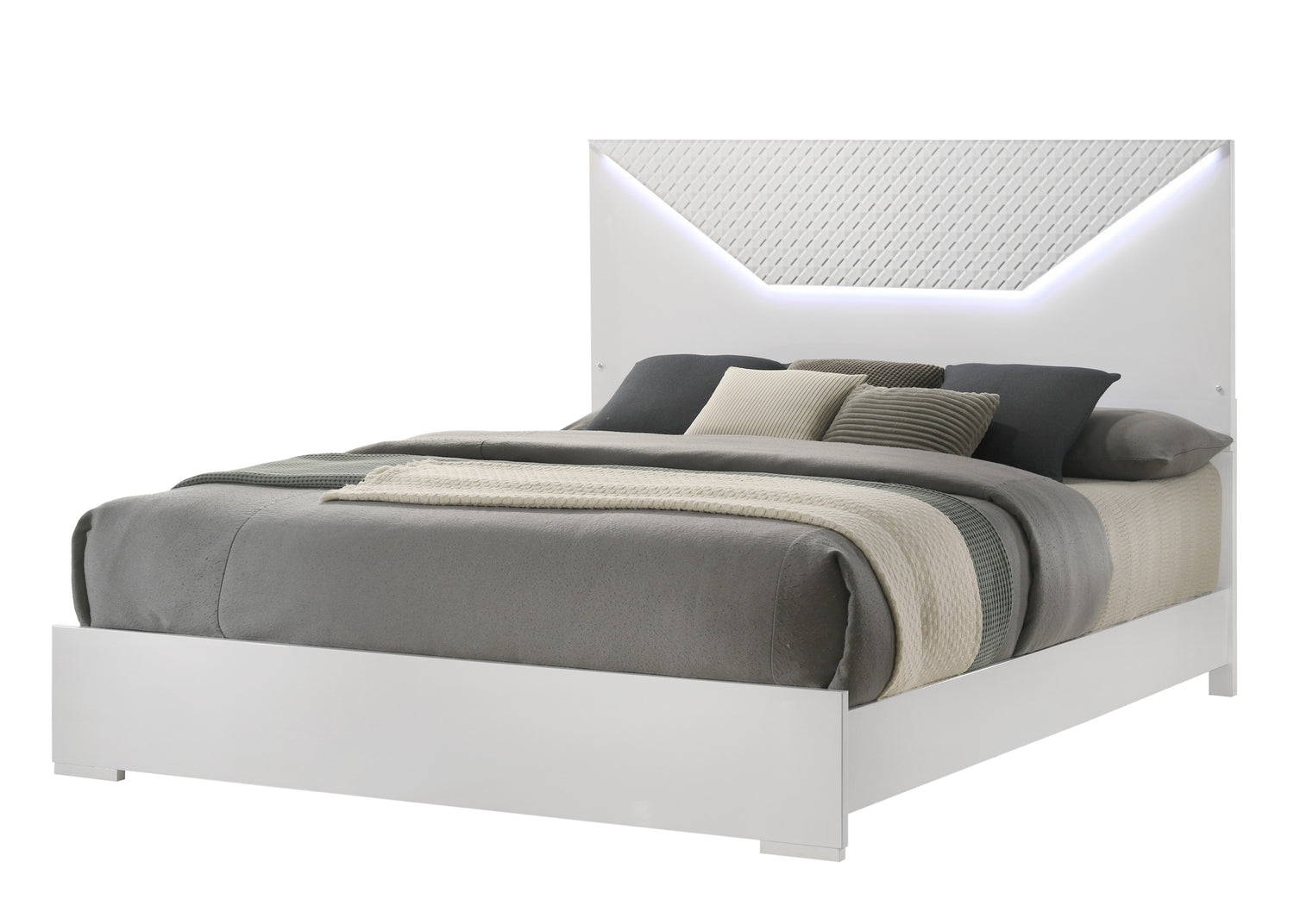 Blanca Modern Style King Bed Made with LED Headboard & Wood in White