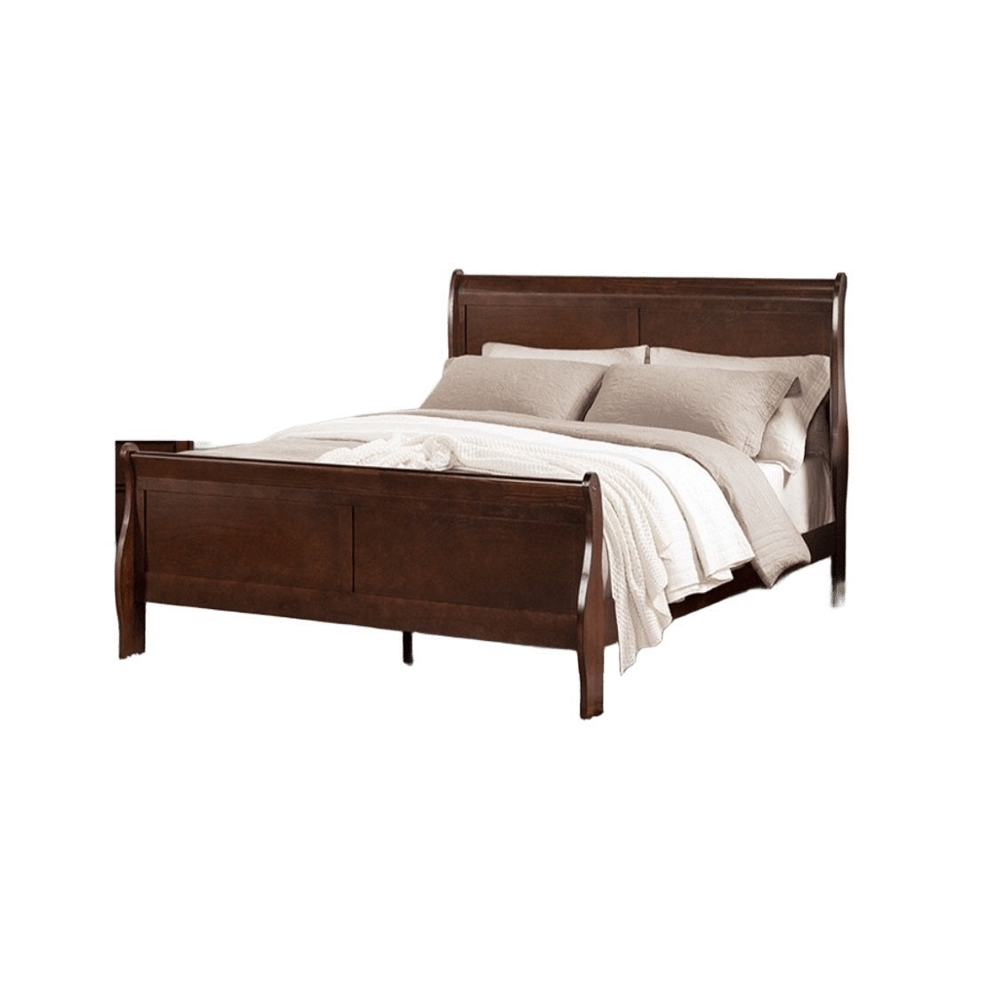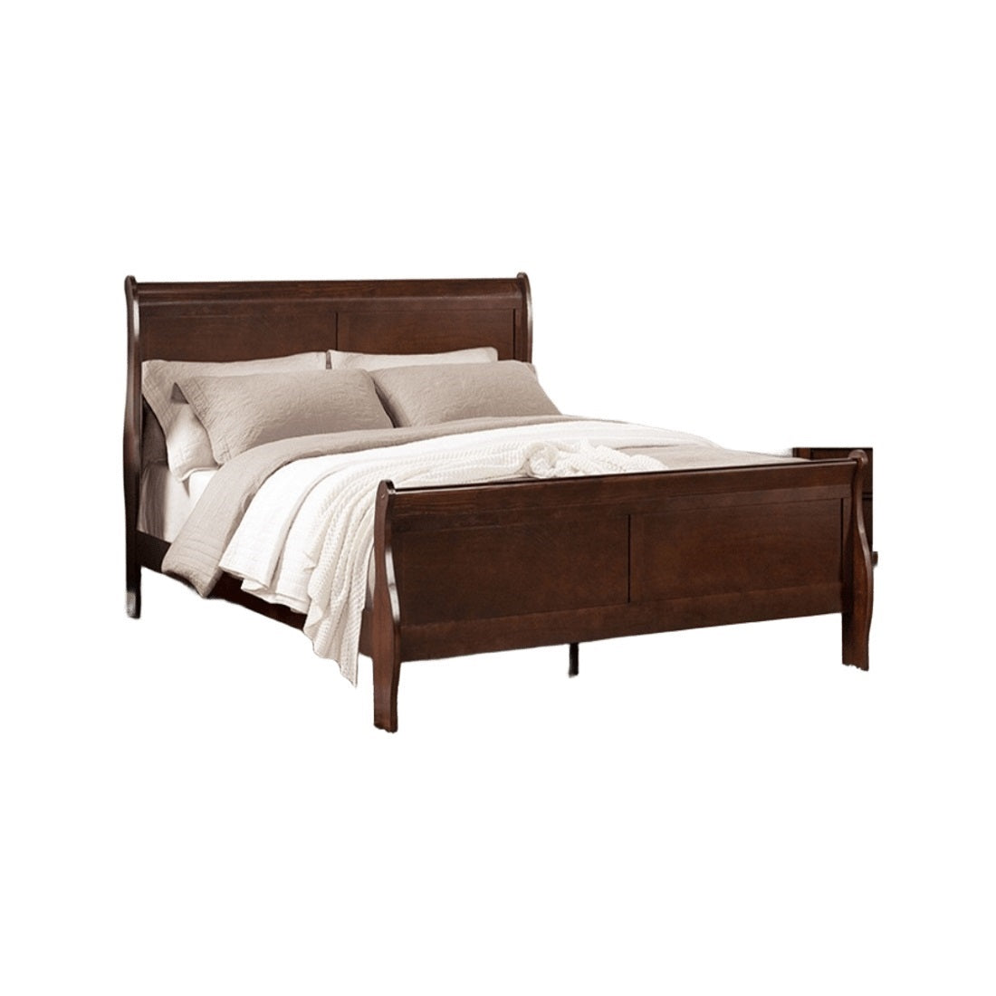 Dark Cherry Sleigh Design 1pc Twin Size Bed Bedroom Furniture Louis Phillipe Bed Bracket Feet Wooden