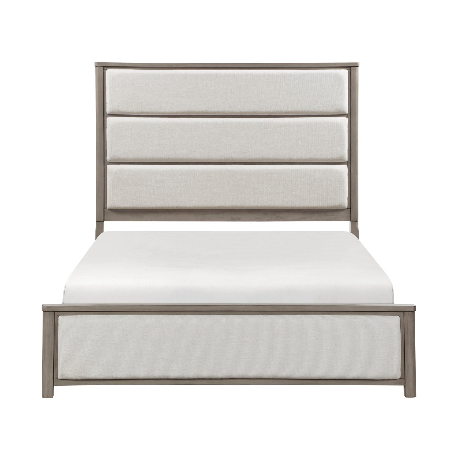 1pc Contemporary King Panel Bed Light Gray Finish Upholstered Headboard Footboard Bedroom Furniture