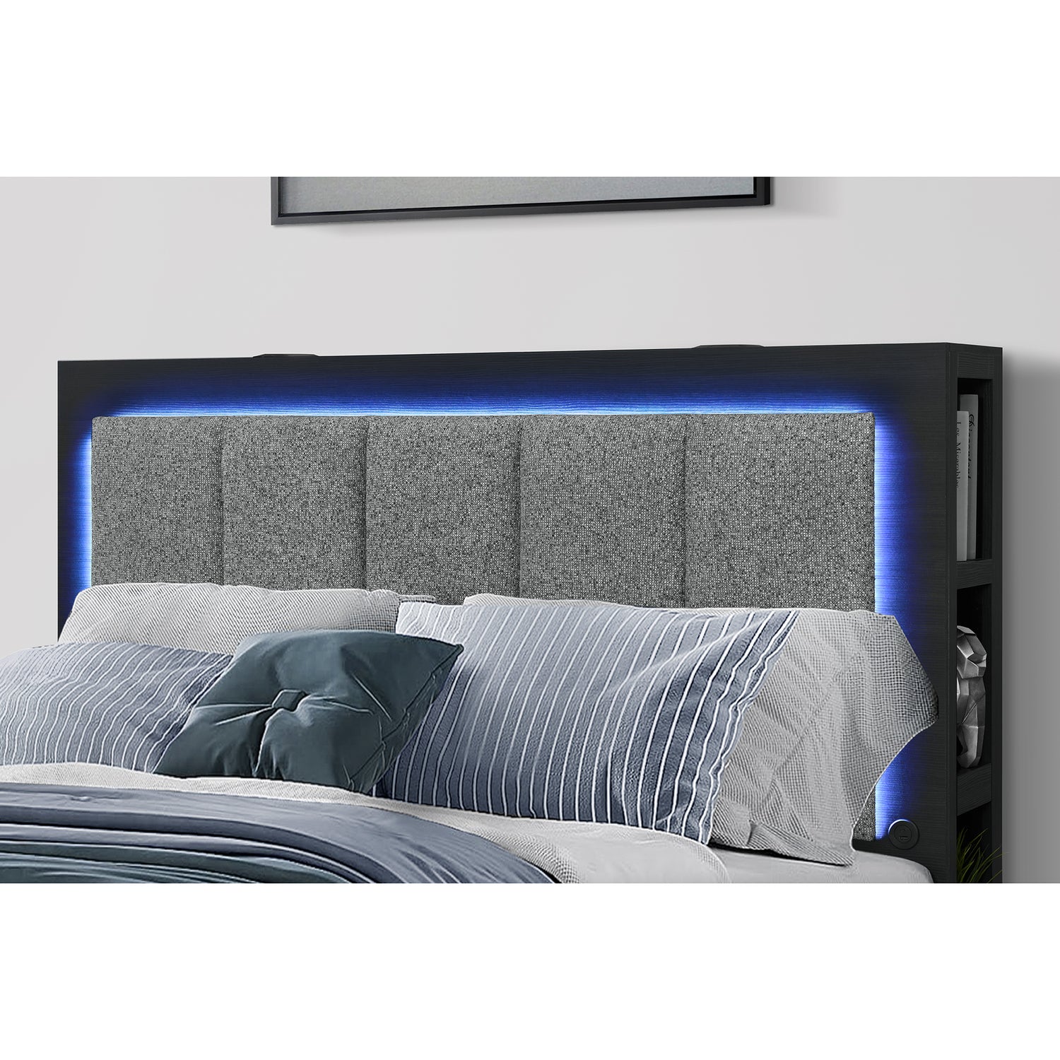 MESSA Contemporary Full Bed with Bookcase Headboard and Storage in Black and Grey Rubber Wood is available