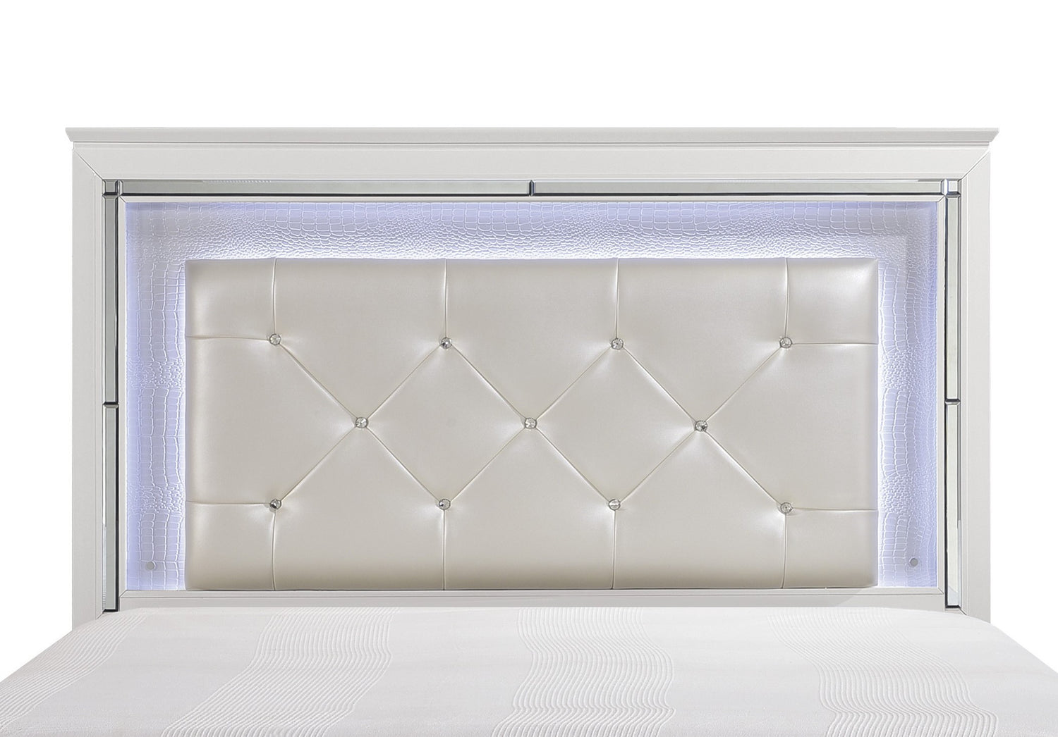 Glamorous Design Bedroom Furniture 1pc Queen Bed Button-Tufted LED Headboard White Finish Faux Alligator Embossed Textured Panels Bed