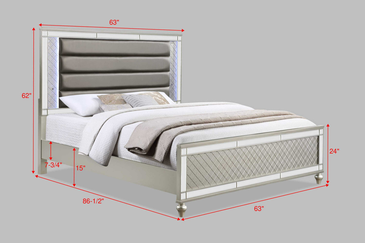 Reach your design goals in your bedroom with this Panel Bed. This bed features a Champagne finish and LED light. Incorporate this into your rest area to give your space a refined touch.