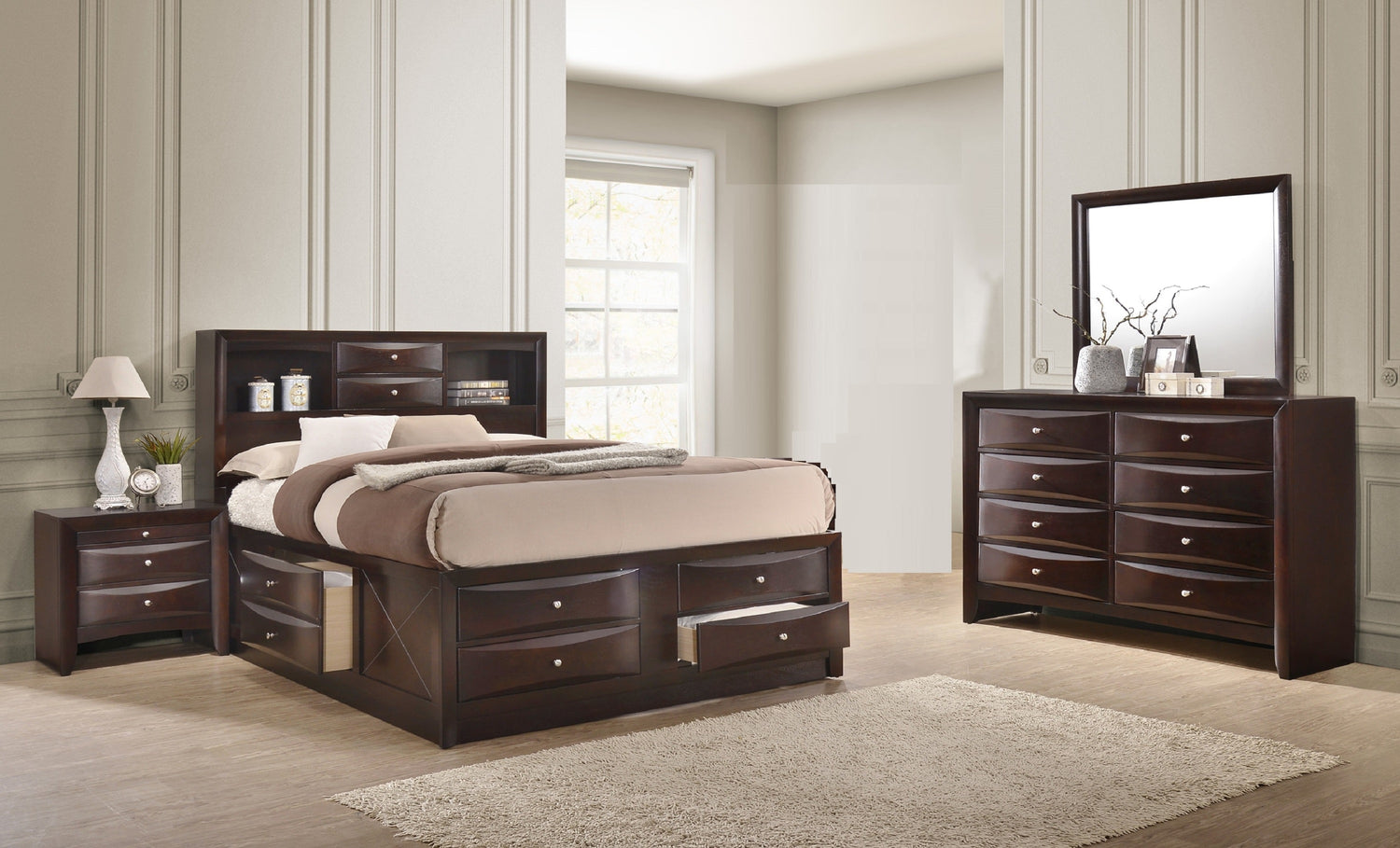 Dark Cherry Queen Storage Platform Captain's Bed with Bookcase Headboard Drawers Solid Wood Furniture is available