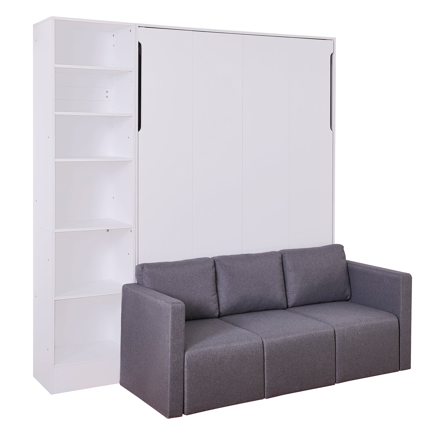 Full Size Murphy Bed Wall Bed with Sofa,with Shelves,White is available