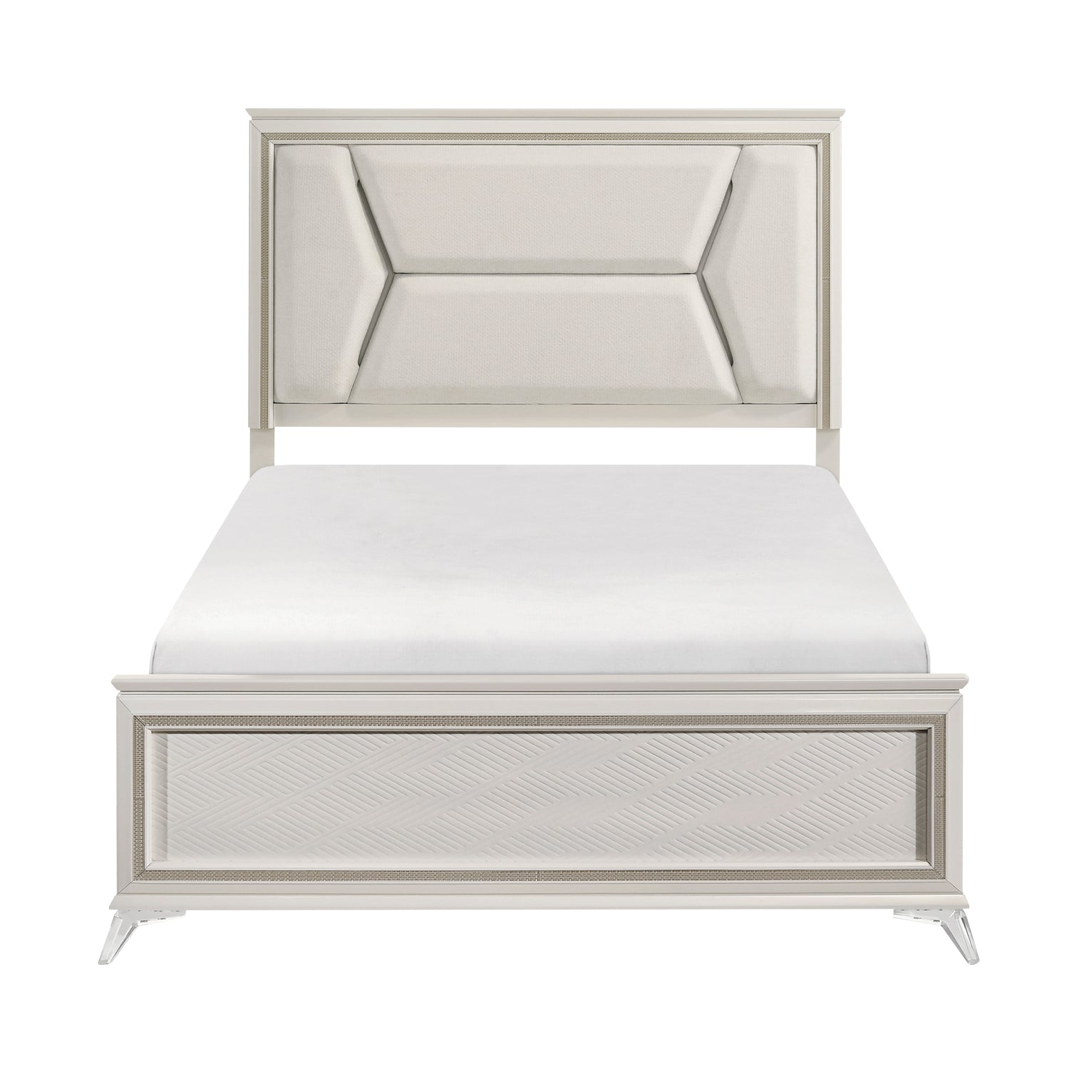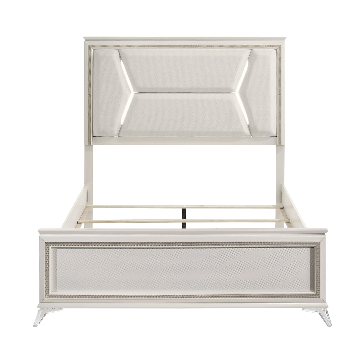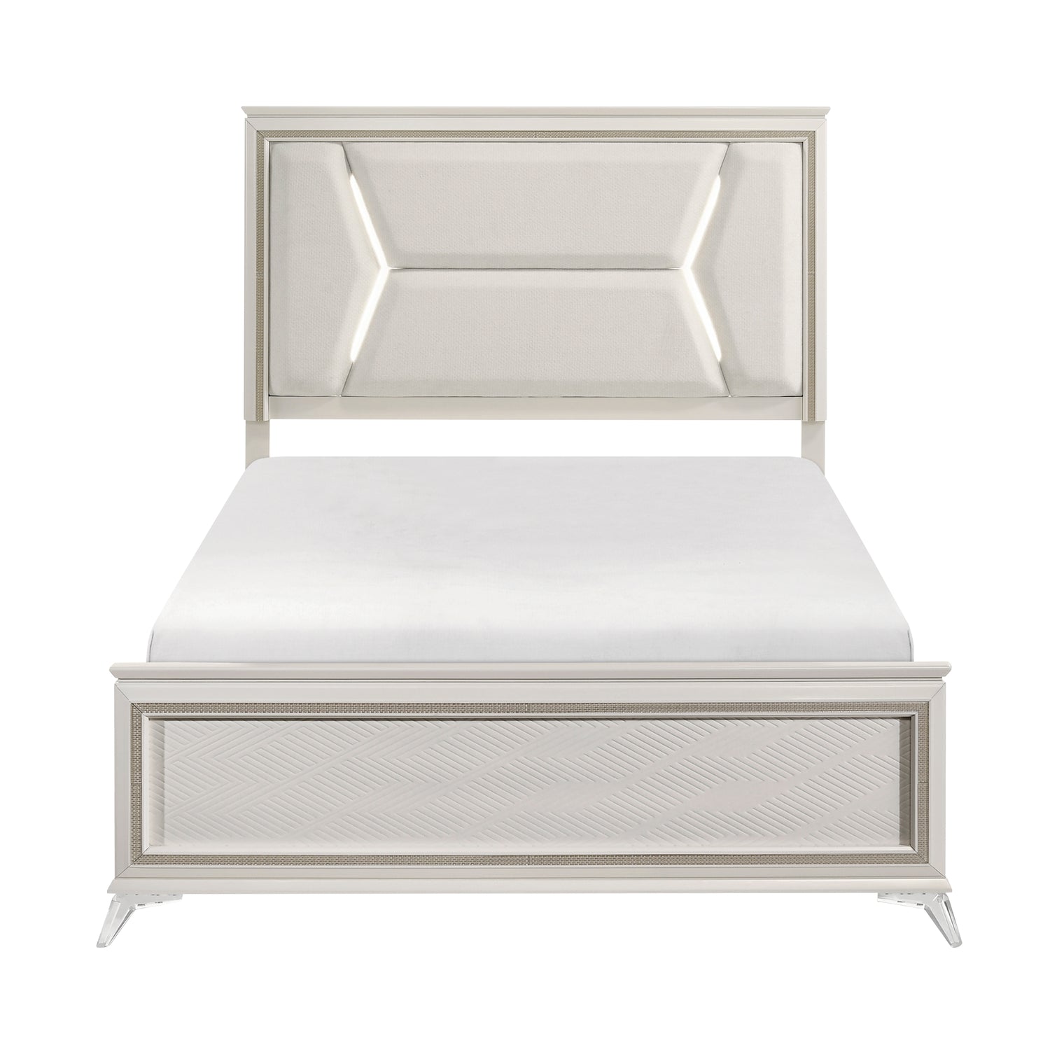 - Chenille upholstered headboard with LED lighting